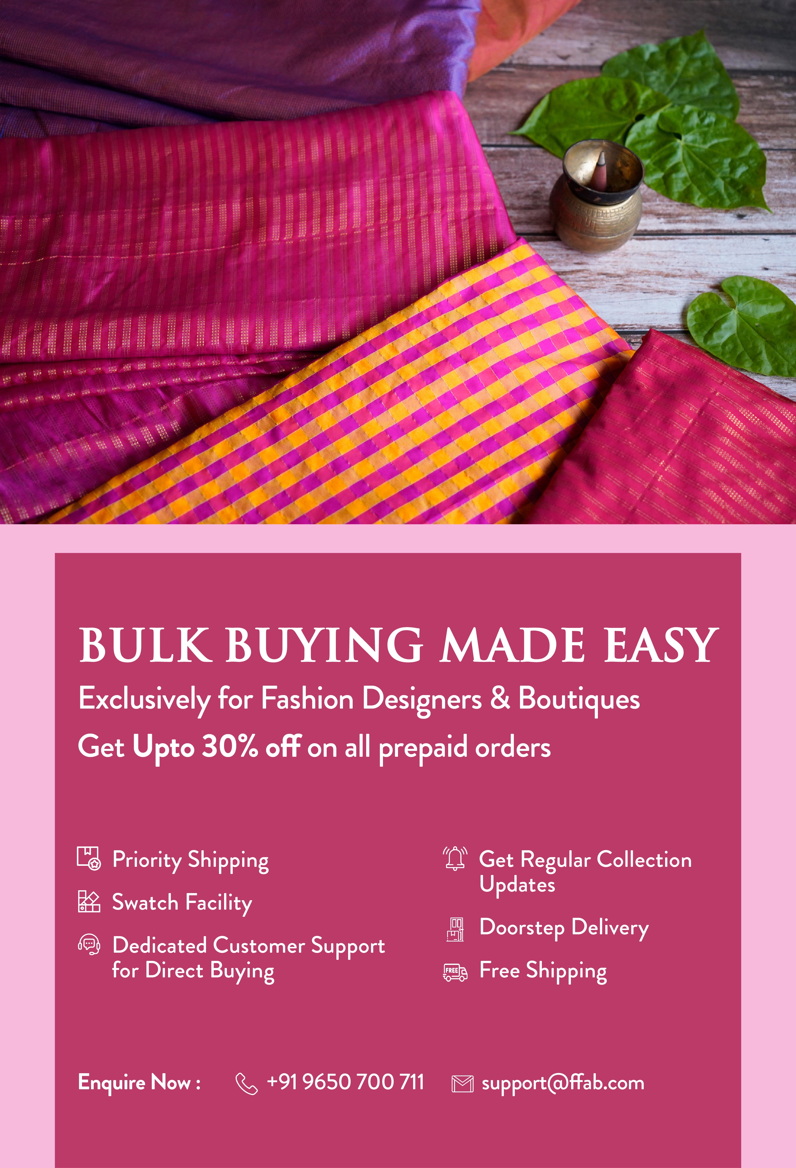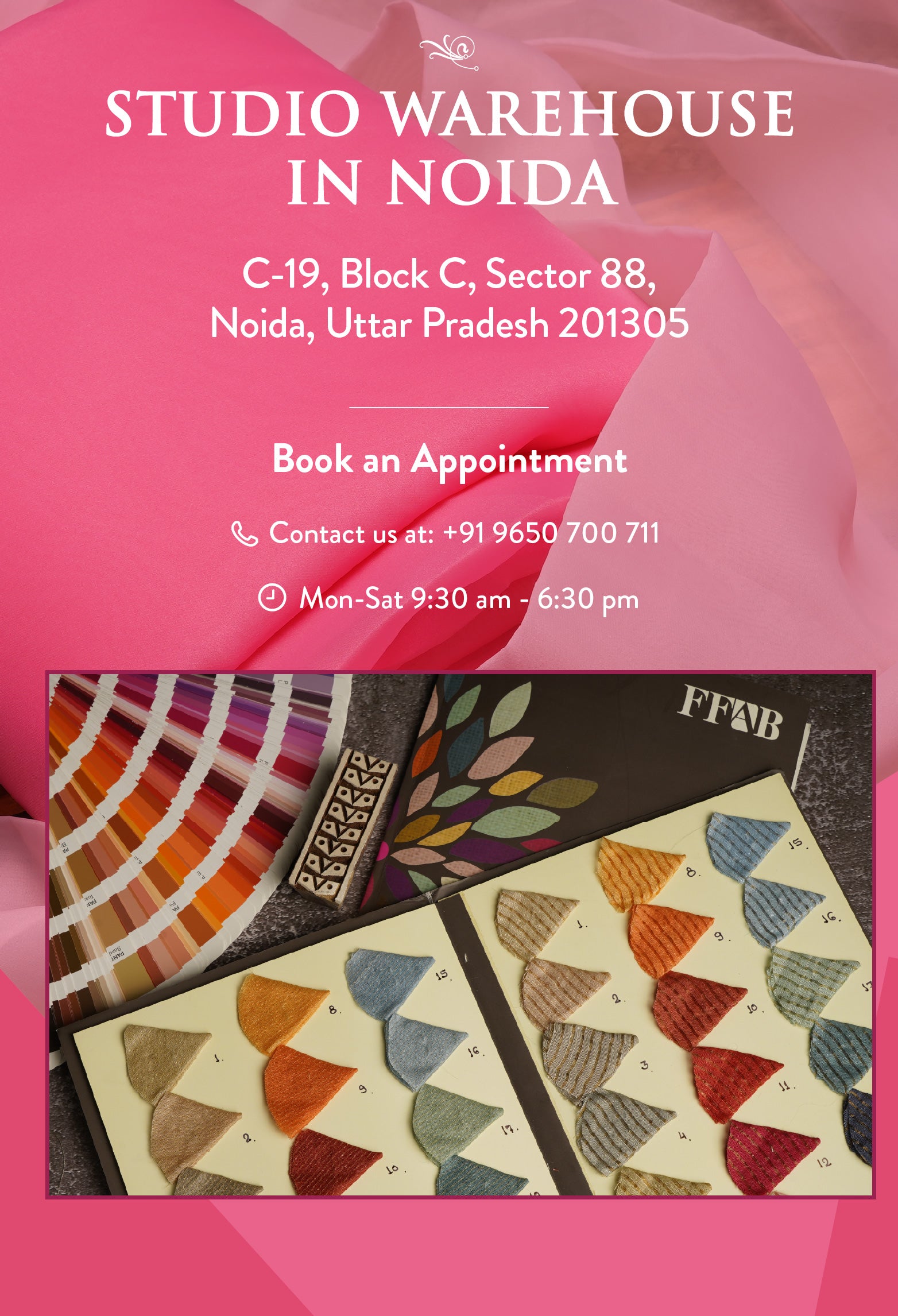 A warm oasis for all fashion designers and boutique owners with walls clad with every natural Indian designer textile imaginable. With a strong network of artisans, an integrated in-house textile facility, customized digital printing, embroideries and weaves, our prime focus lies in preserving the rich Indian textile heritage and supporting designers, boutiques, fashion enthusiasts and students in all their fashion endeavors.