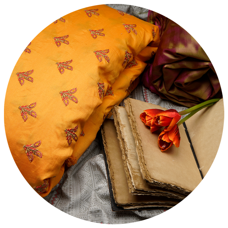 Add a whole new spark to your collections with our exclusive range of pre-cut fabrics. More than 500+ unique cut-pieces curated from all designer textile categories, available at discounted prices. These remnants showcase a mix of prints, plains, embroideries, hand blocks and more designs that you can transform into quirky accents for garments, dupattas, stoles, blouses, accessories, cushion covers, table mats, notebook covers and a whole set of DIY must-haves.