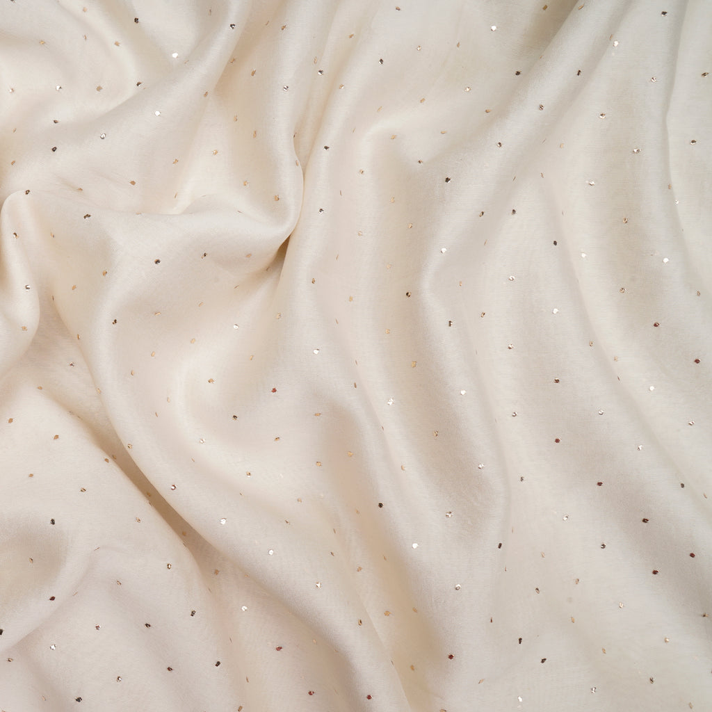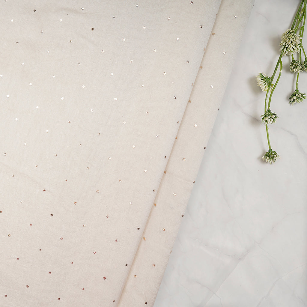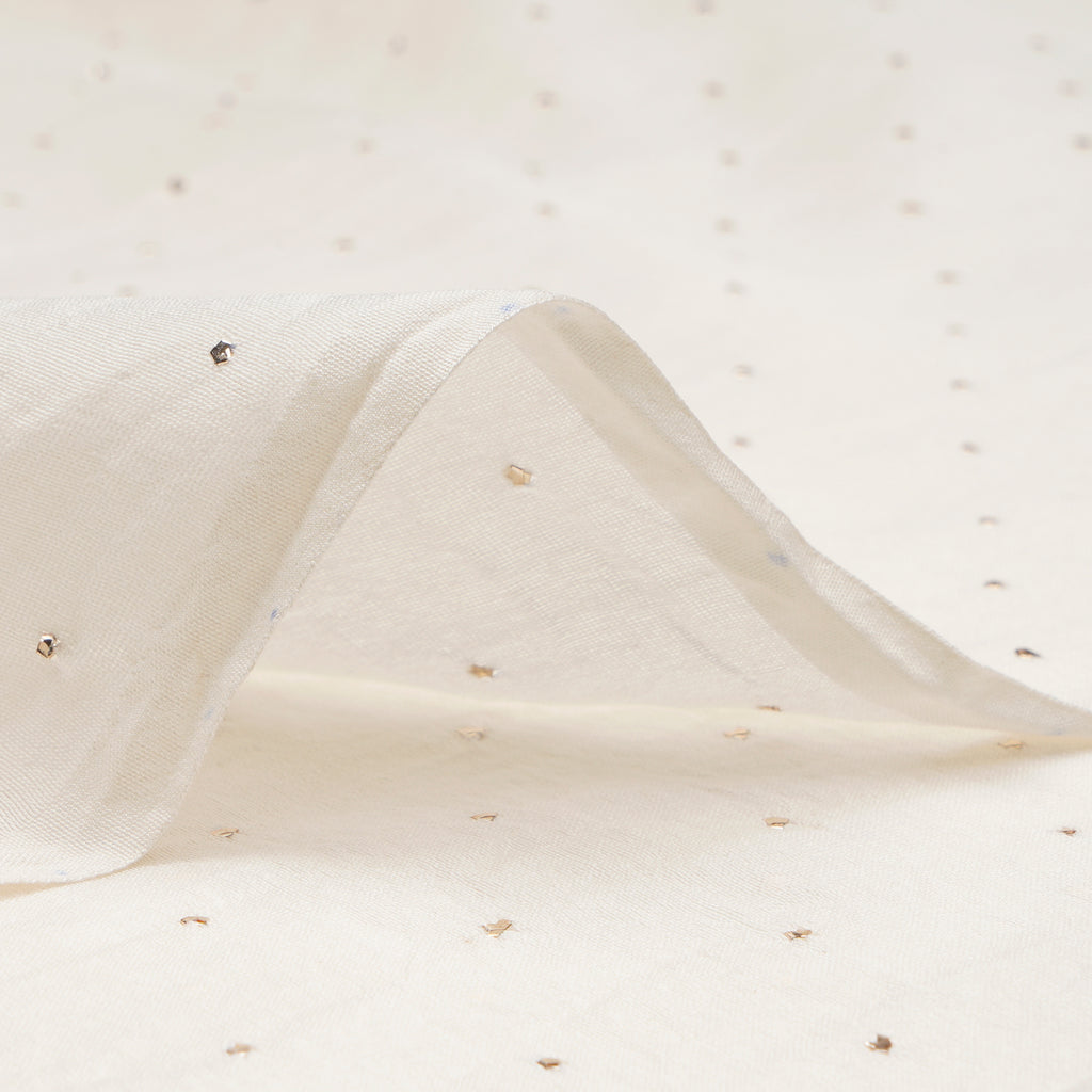 (Pre-Cut 0.50 Mtr)White Dyeable All Over Pattern Hand Embroidered Mukaish Work Tissue Chanderi Fabric