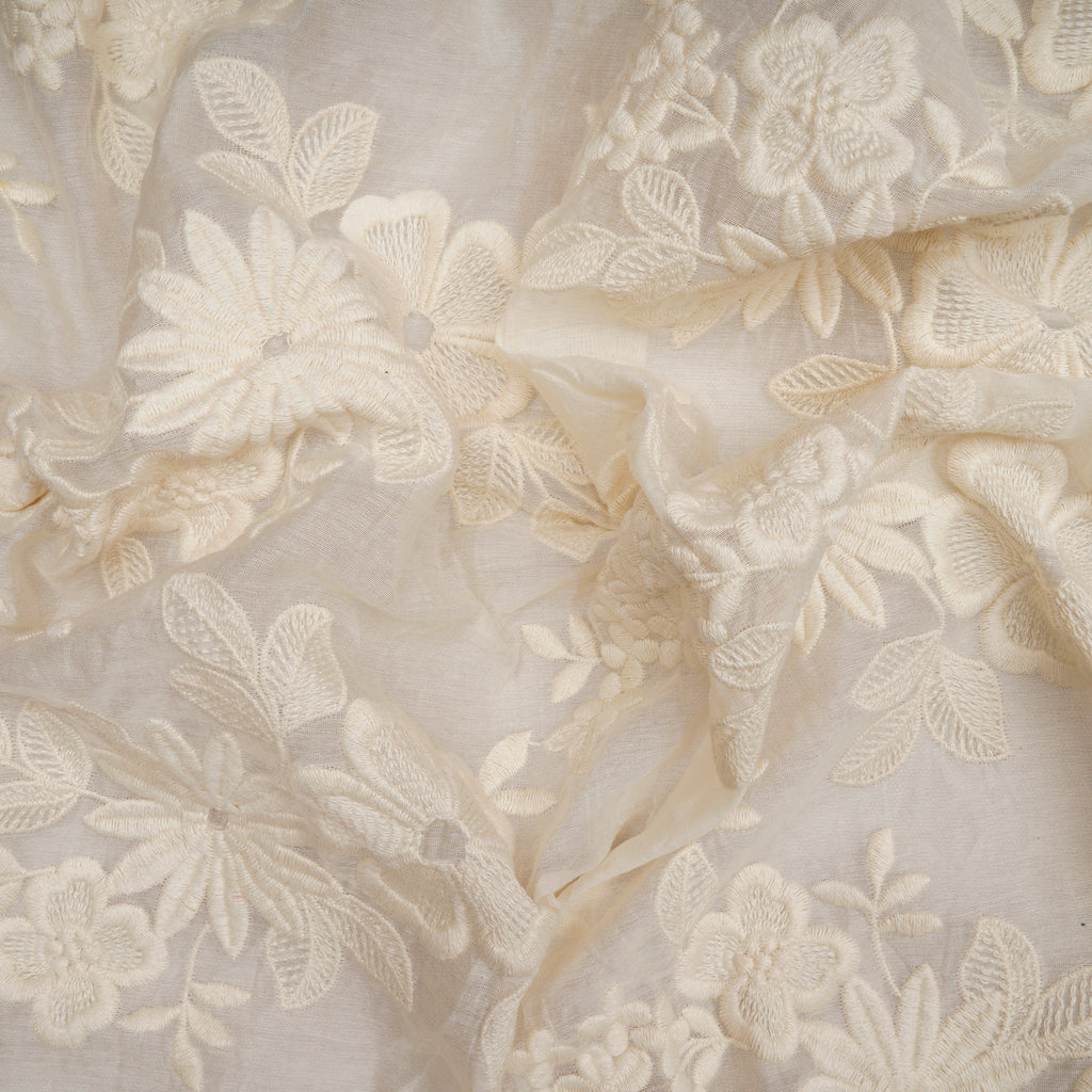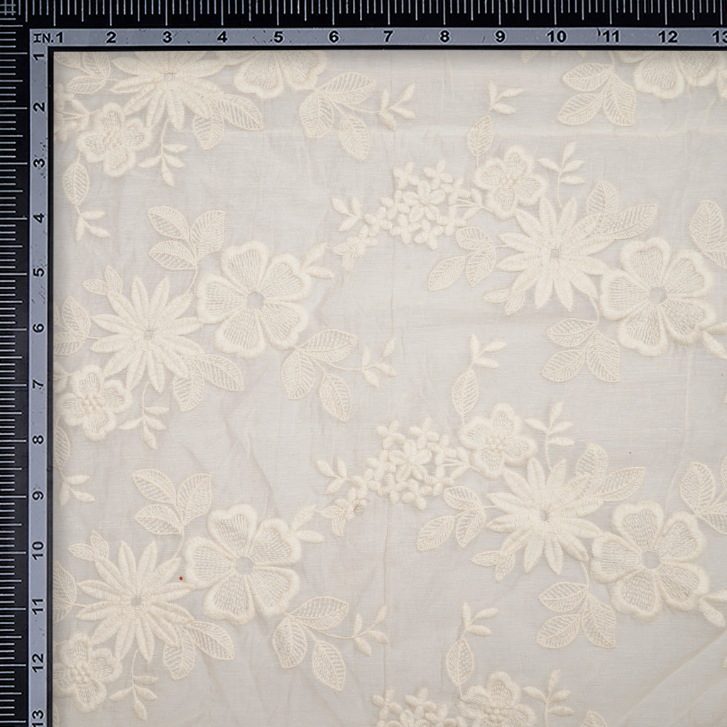 (Pre-Cut 0.60 Mtr)White Color Embroidered Fine Chanderi Fabric