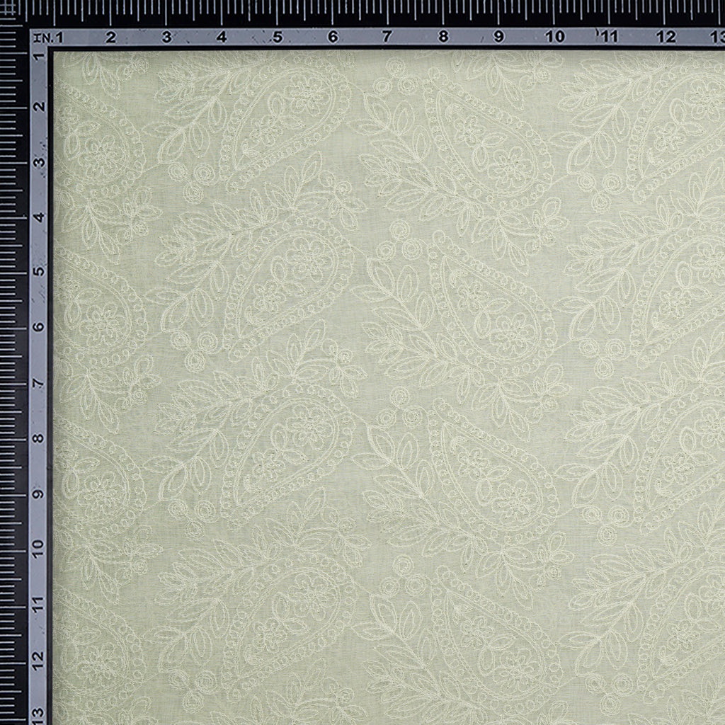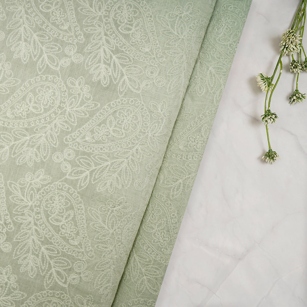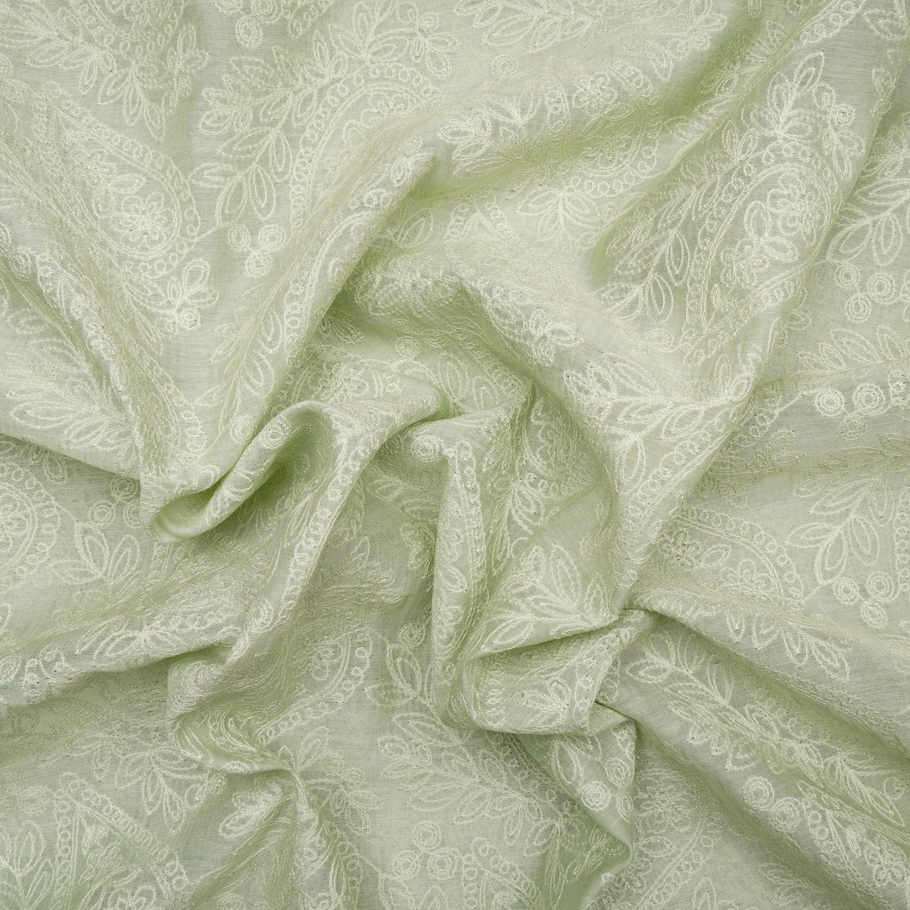 (Pre-Cut 0.70 Mtr)Pastel Green Schiffili Embroidered Fine Chanderi Fabric
