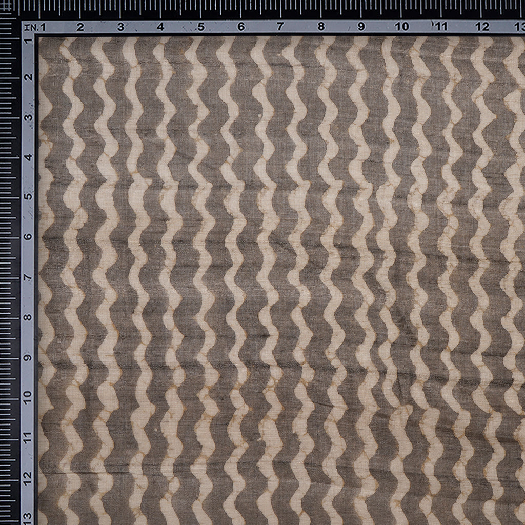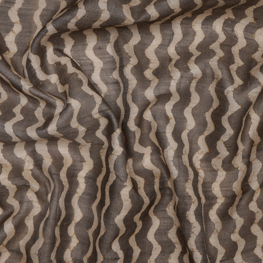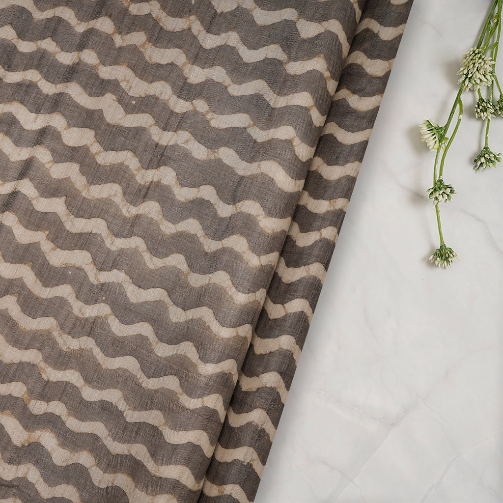 (Pre-Cut 0.80 Mtr)Grey Color Digital Print Tussar Silk Fabric