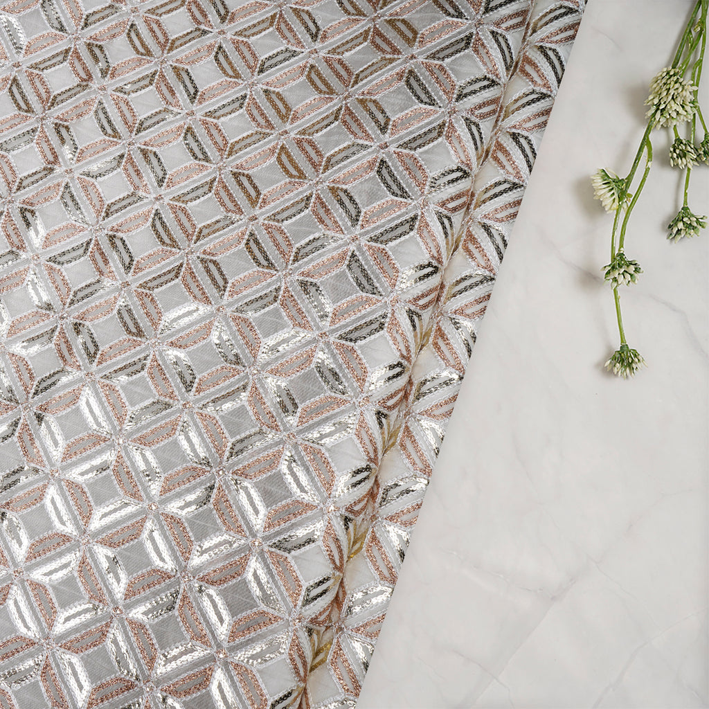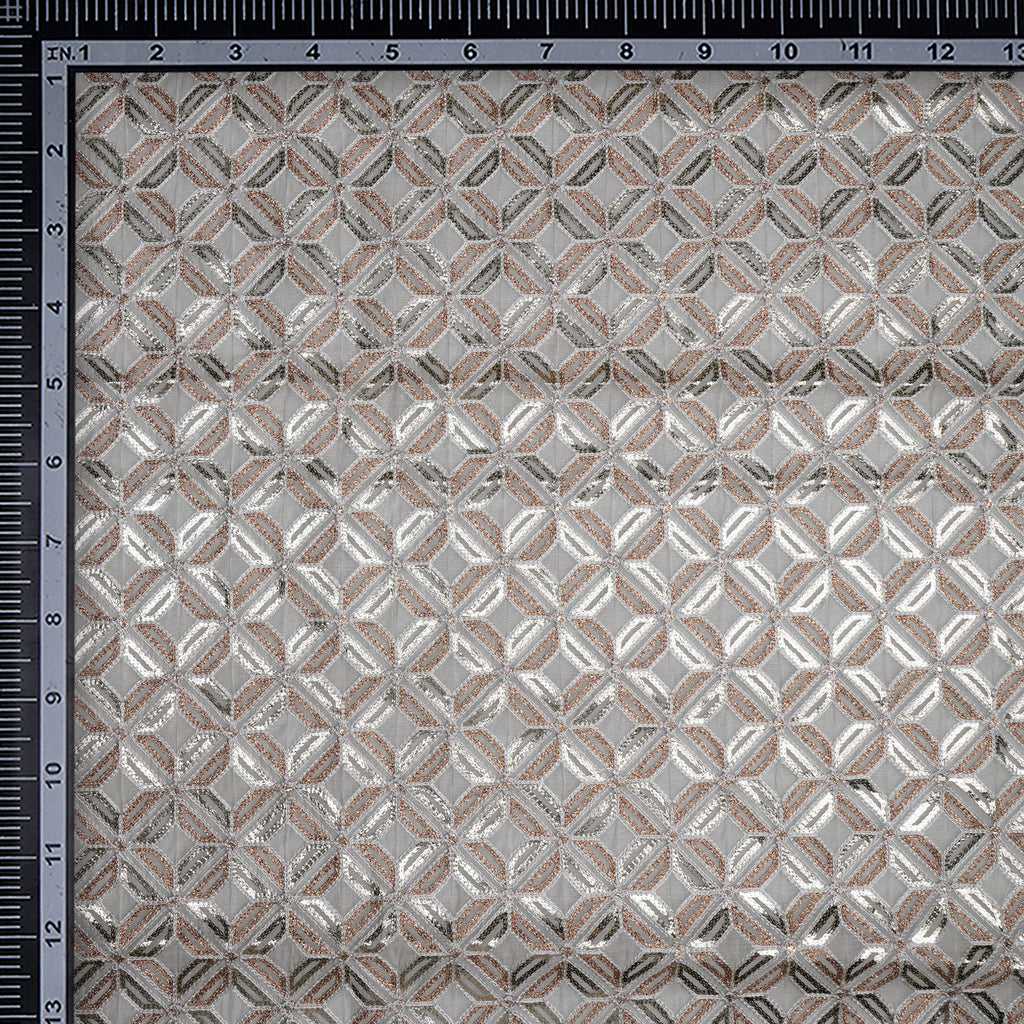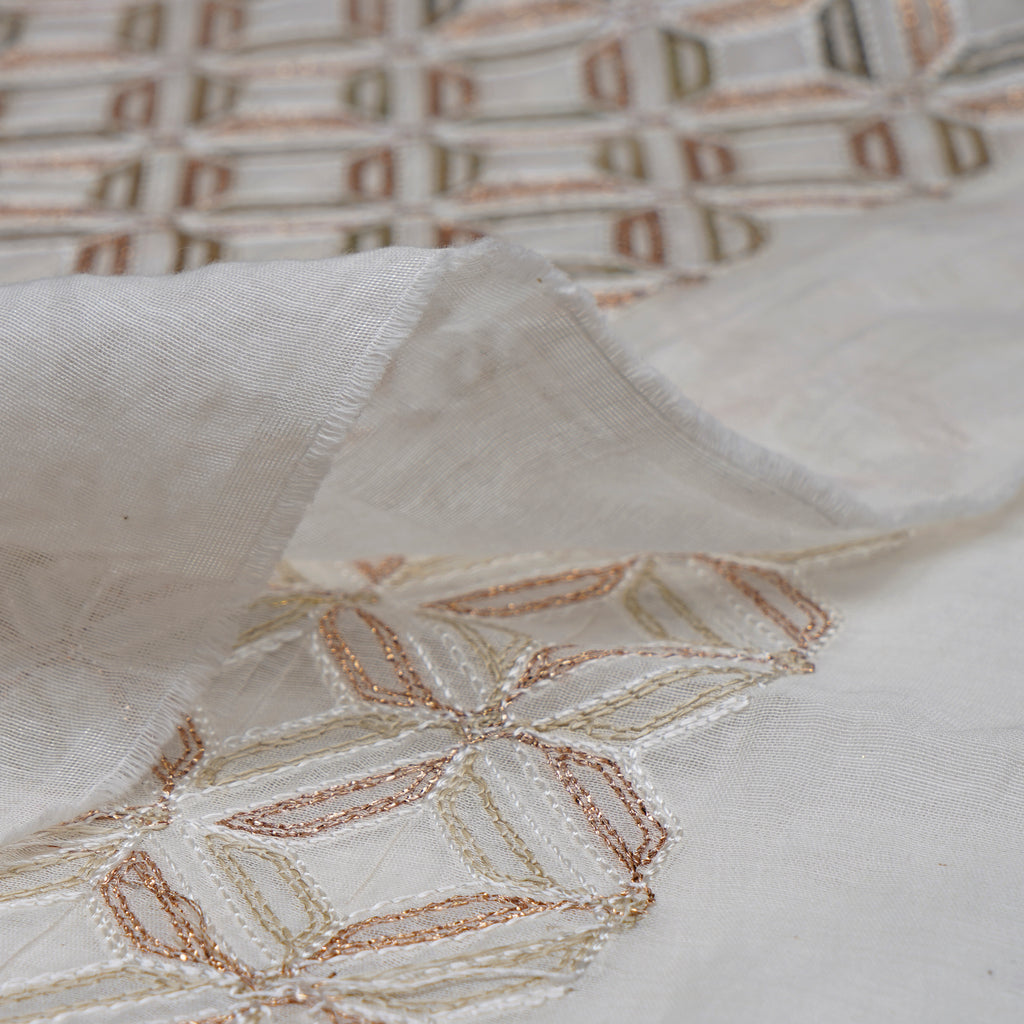 (Pre-Cut 0.90 Mtr)Off White Dyeable All Over Pattern Embroidered Chanderi Fabric