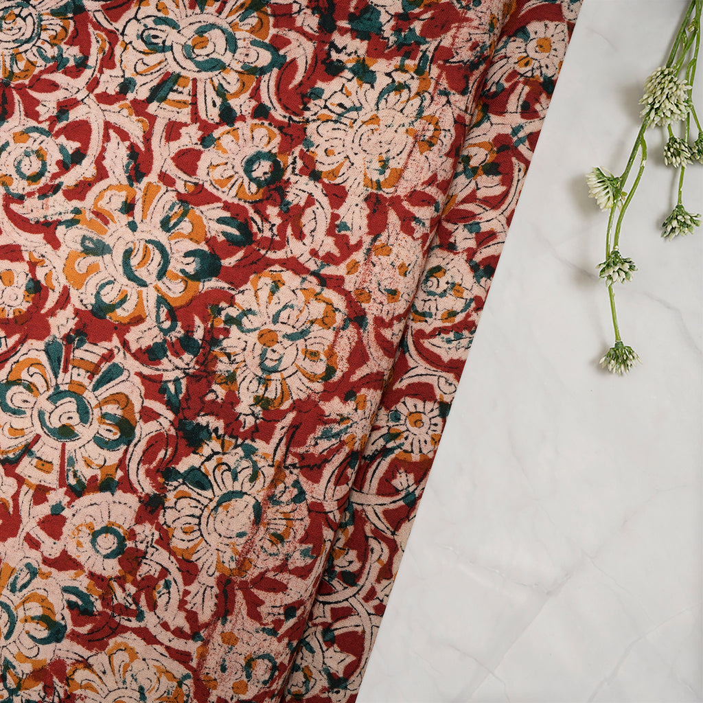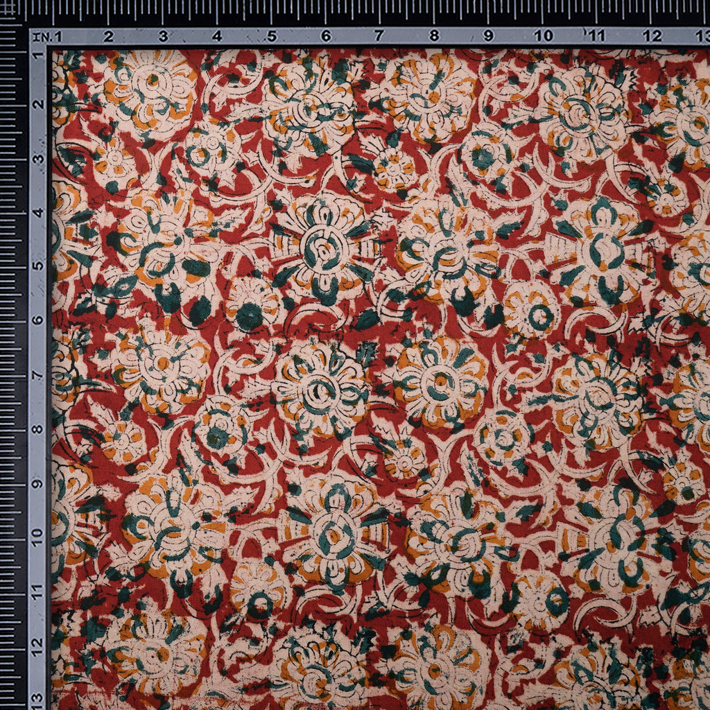 (Pre-Cut 1.00Mtr)Multi Color Floral Pattern Hand Block Kalamkari Printed Cotton Fabric