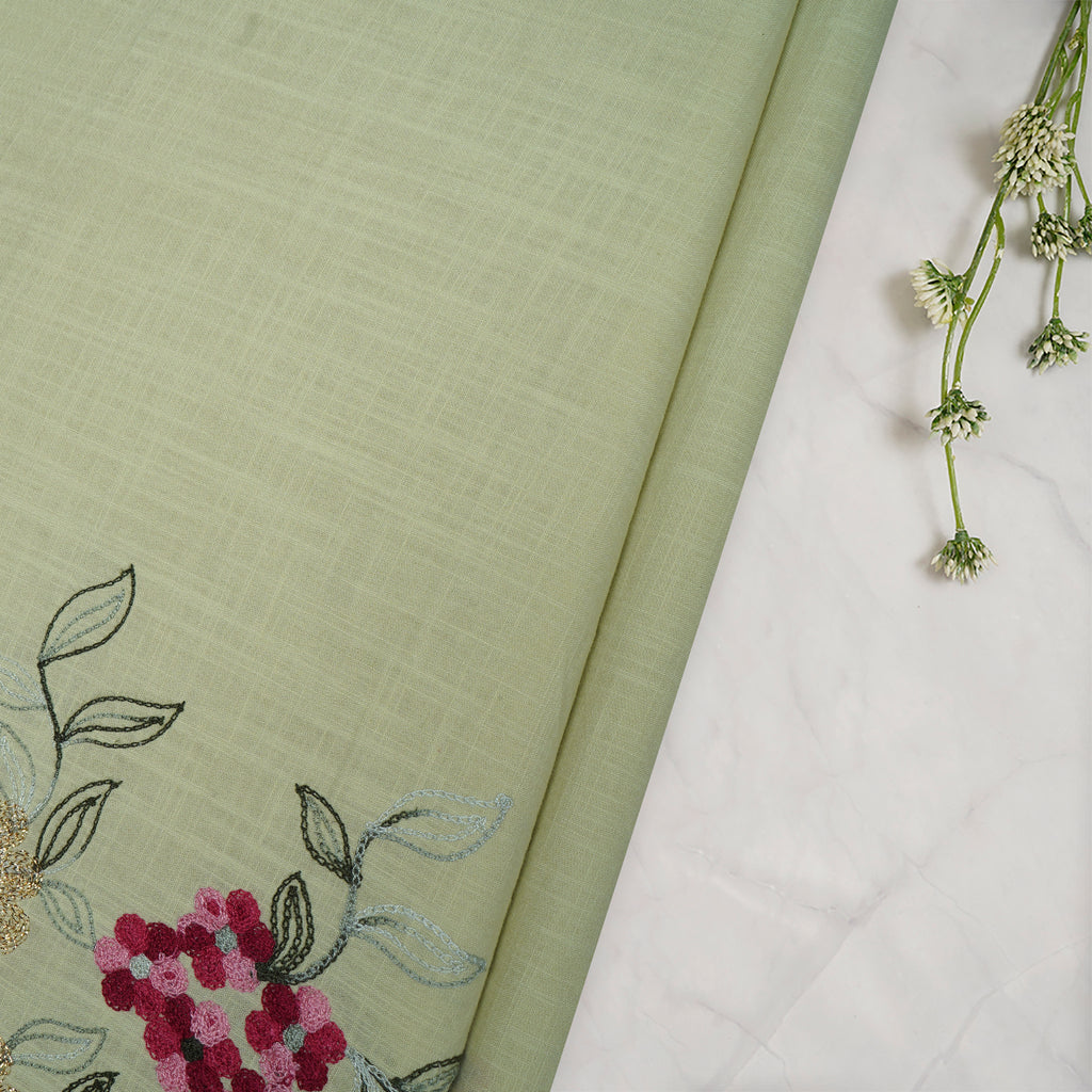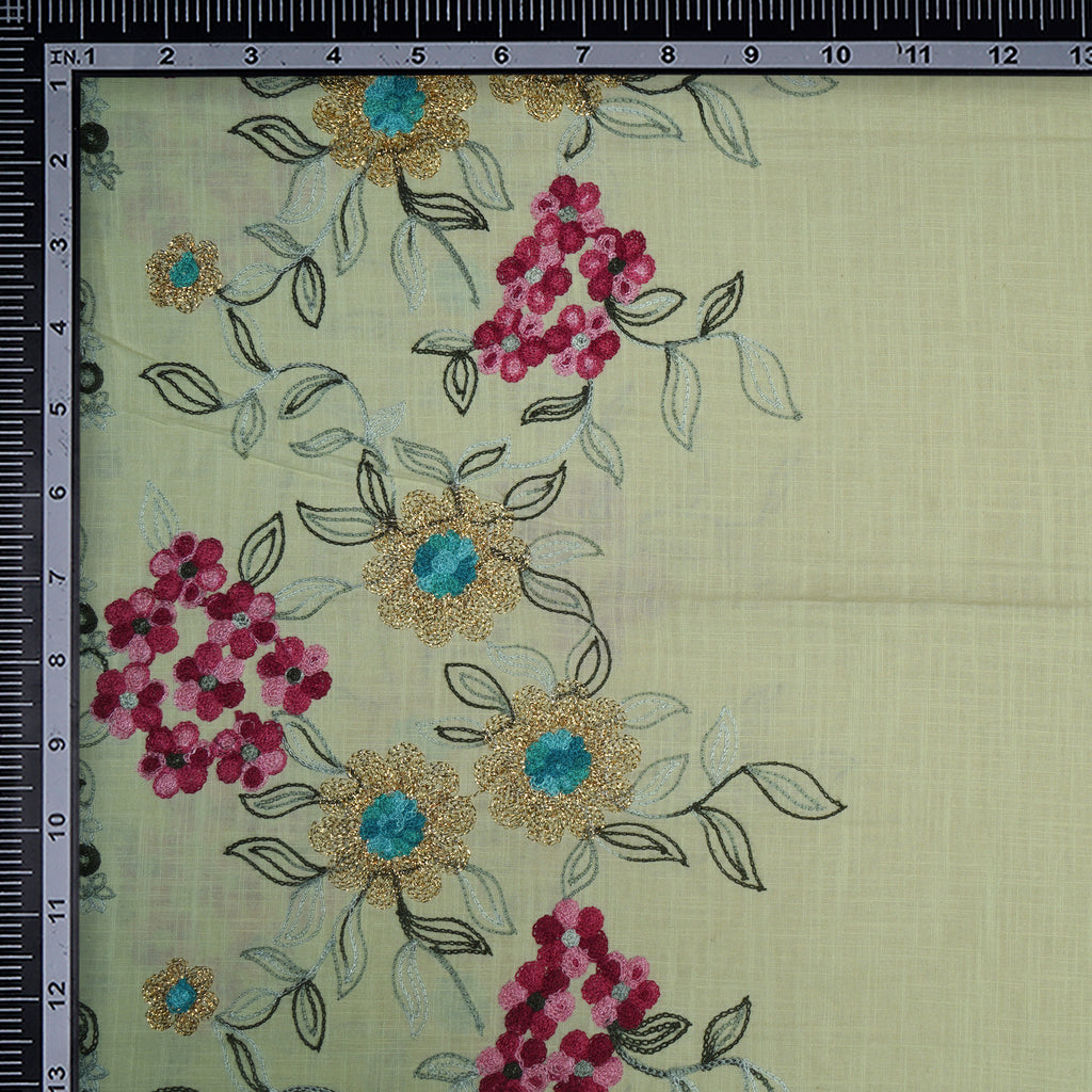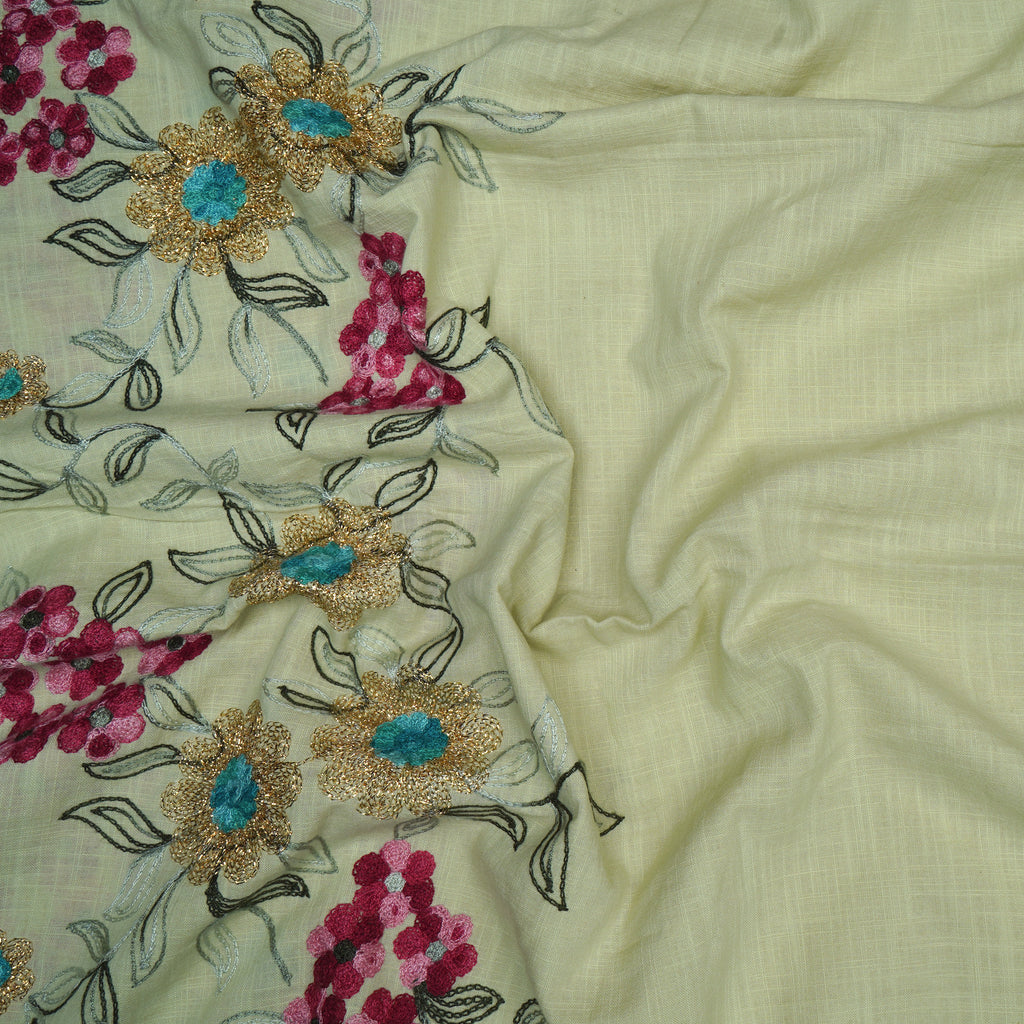(Pre-Cut 1.40 Mtr)Multi Color Embroidered Cotton Fabric