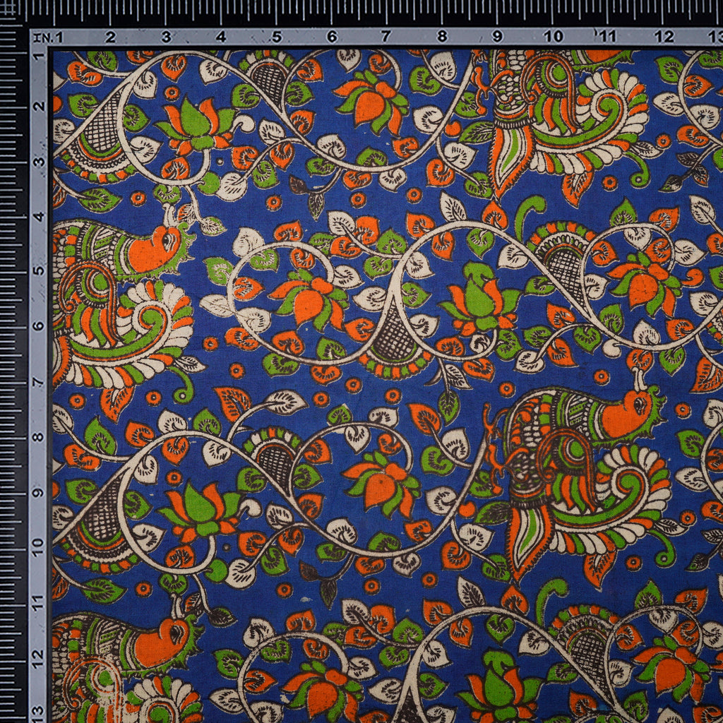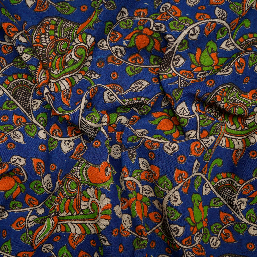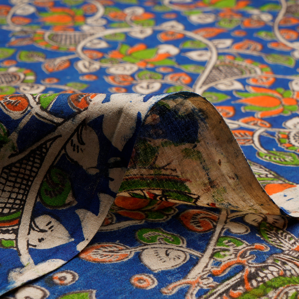 (Pre-Cut 1.40 Mtr)Multi Color Floral Pattern Screen Printed kalamkari Cotton Fabric