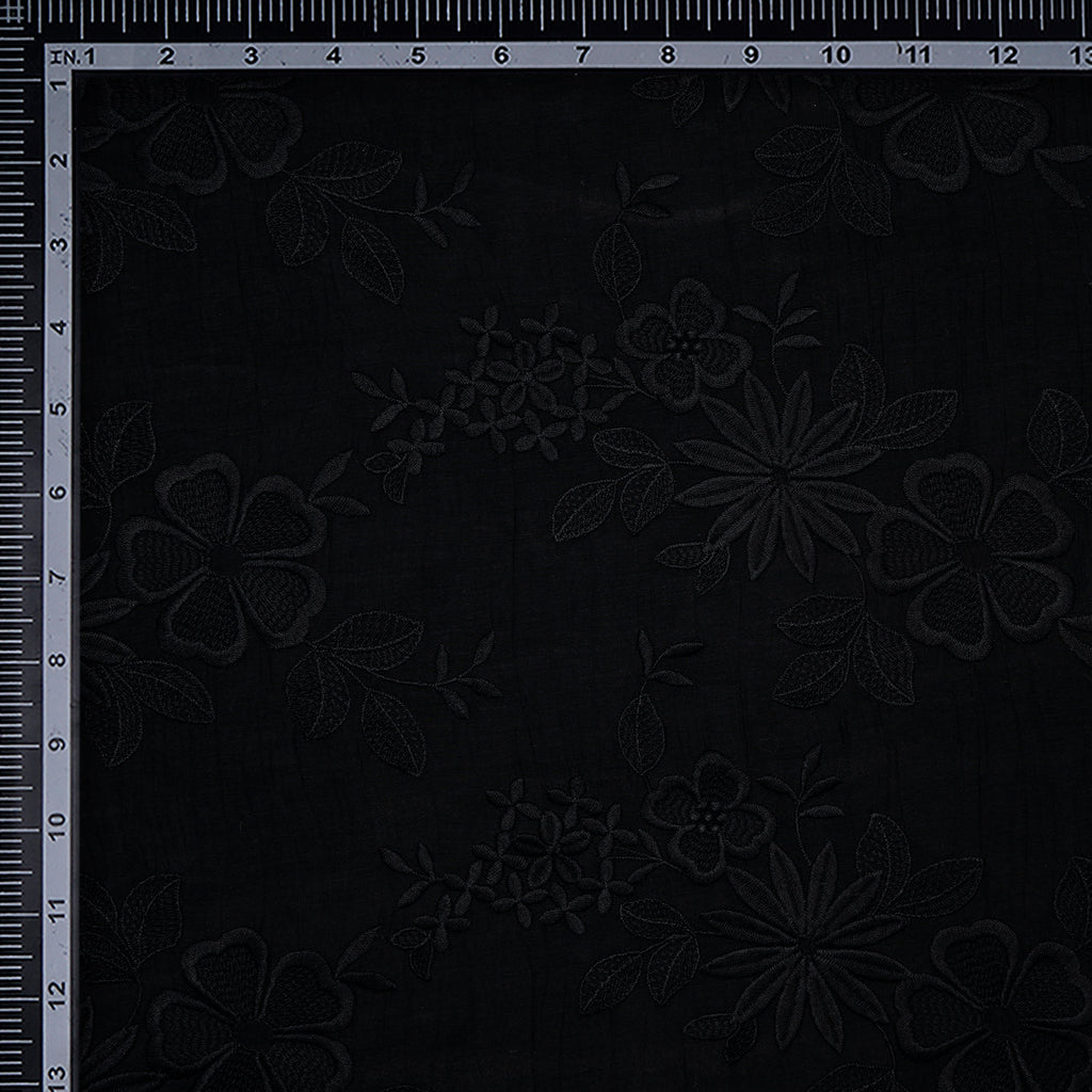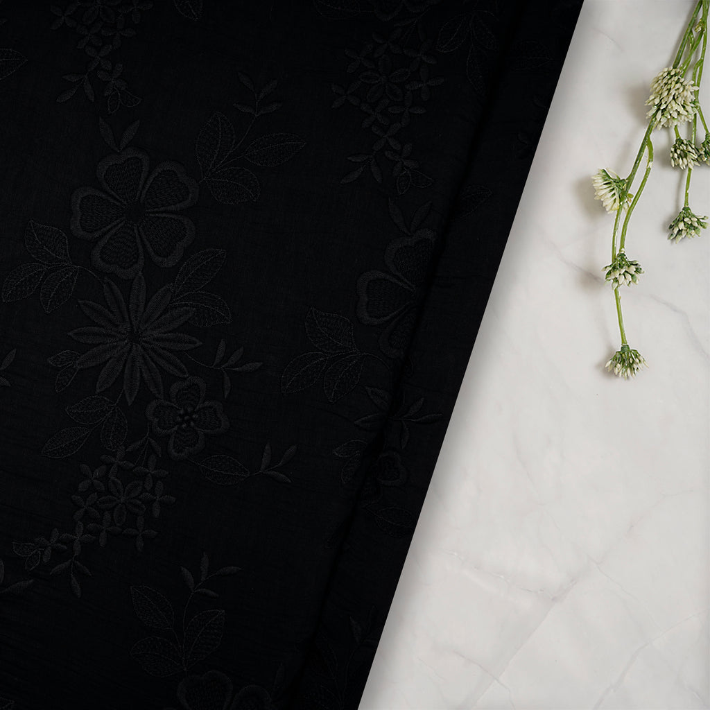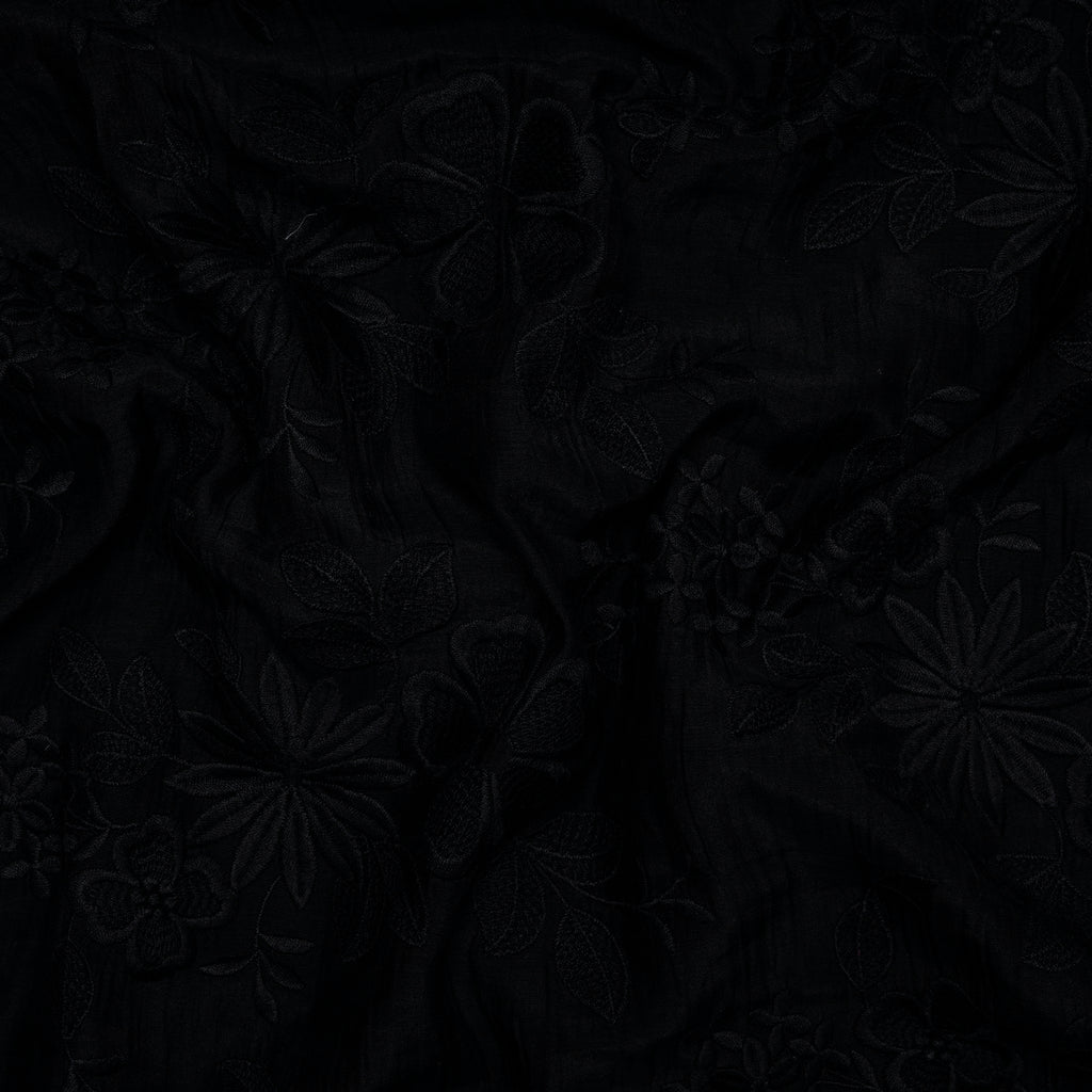 (Pre-Cut 1.50 Mtr) Black Embroidered Pure Chanderi Fabric