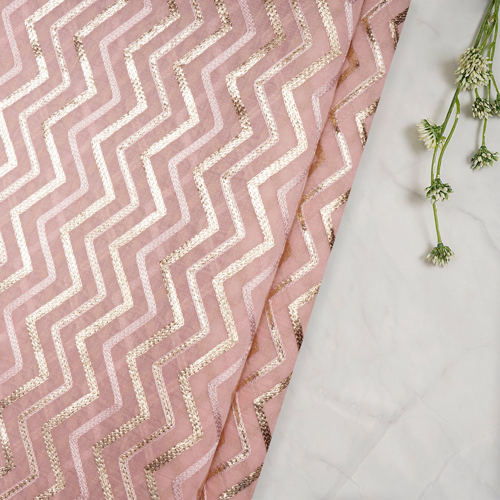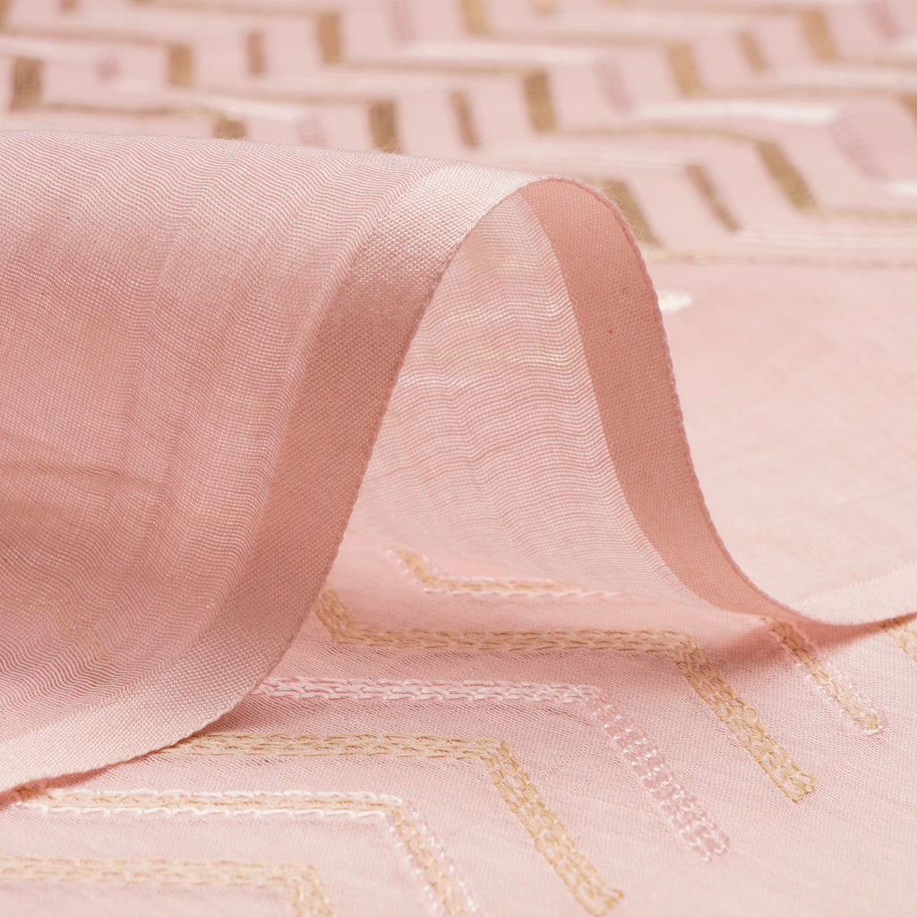 (Pre-Cut 1.50 Mtr)Baby Pink All Over Pattern Embroidered Chanderi Fabric