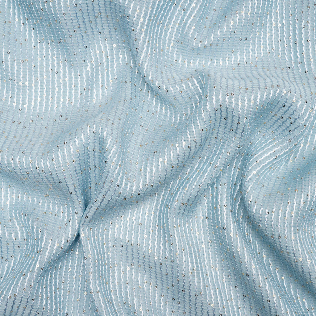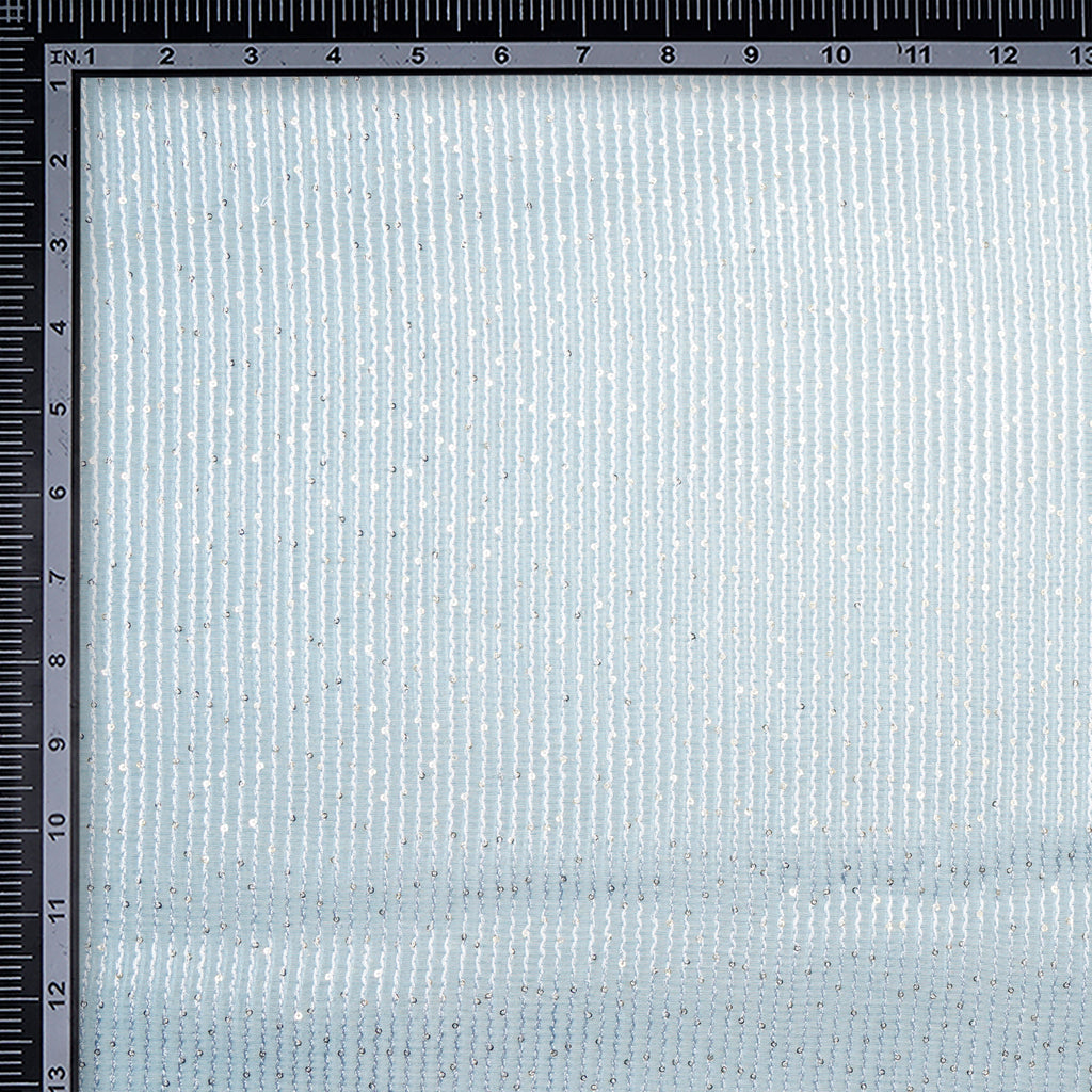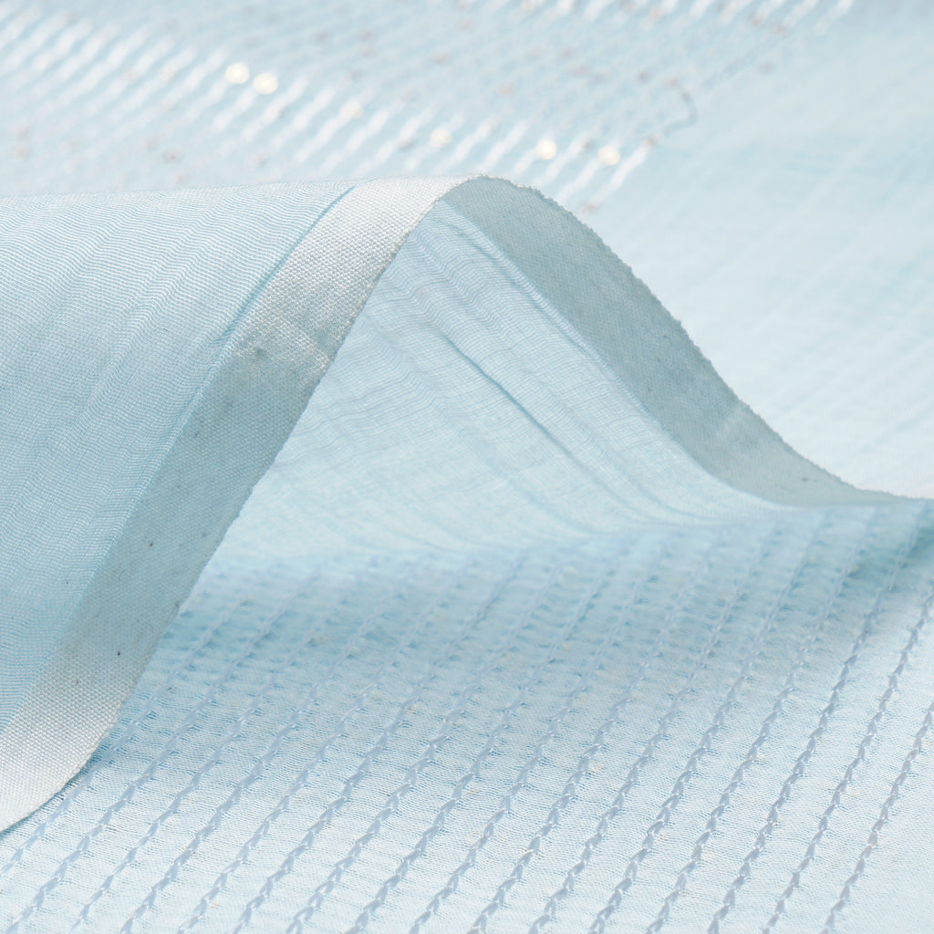 (Pre-Cut 1.50 Mtr)Ice Blue All Over Pattern Sequins Embroidered Pure Chanderi Fabric