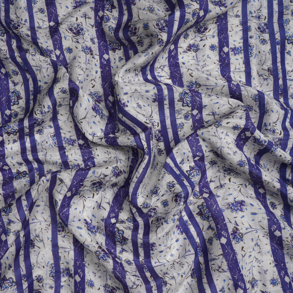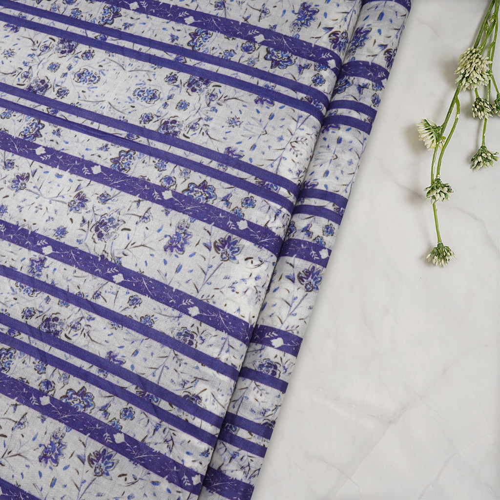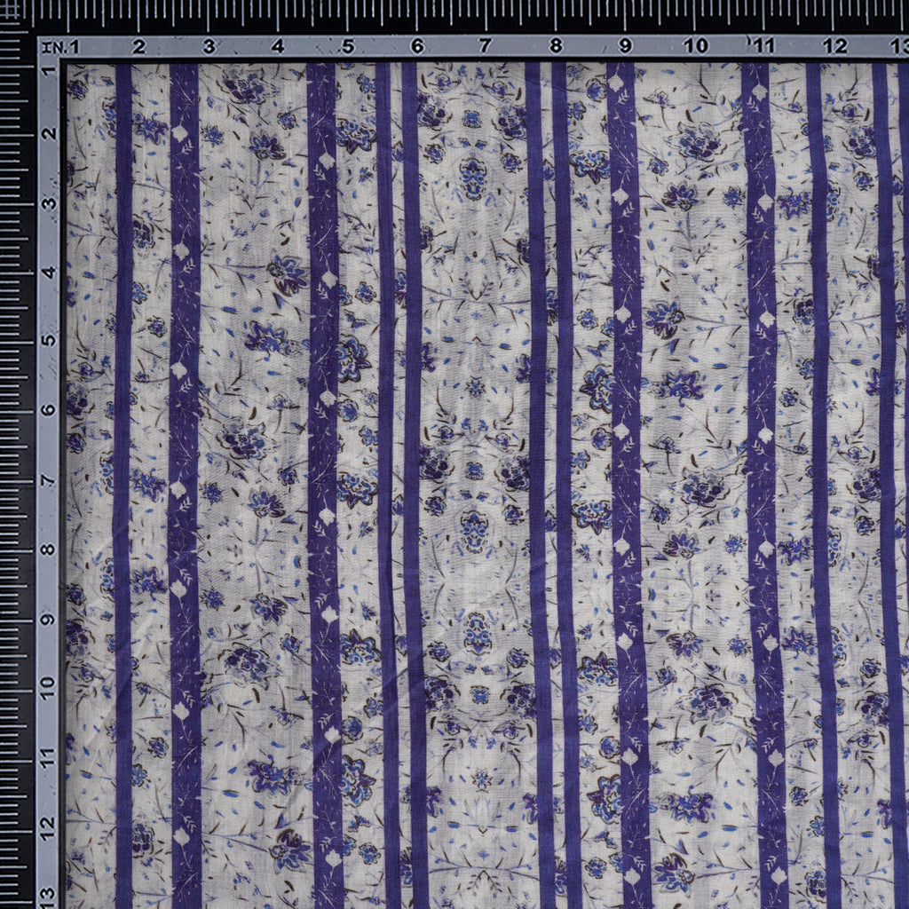 (Pre-Cut 1.70 Mtr)Off-White-Purple Color Digital printed Tussar Chanderi Fabric
