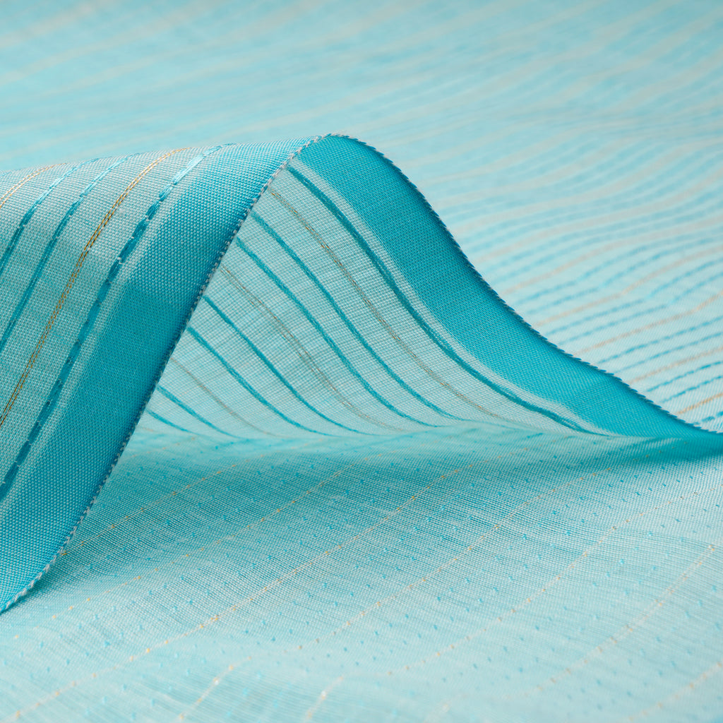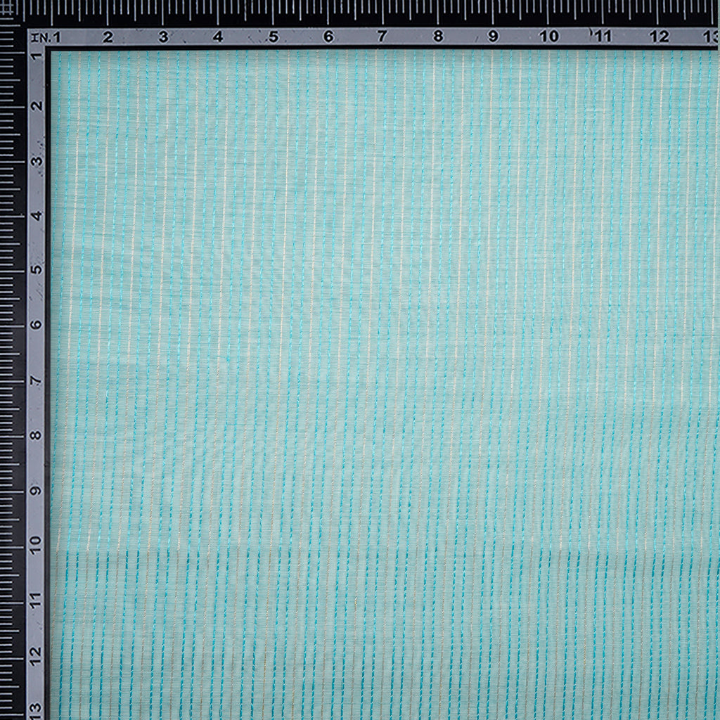 (Pre-Cut 1.90 Mtr)Light Blue Stripe Pattern Embroidered Fancy Chanderi Fabric