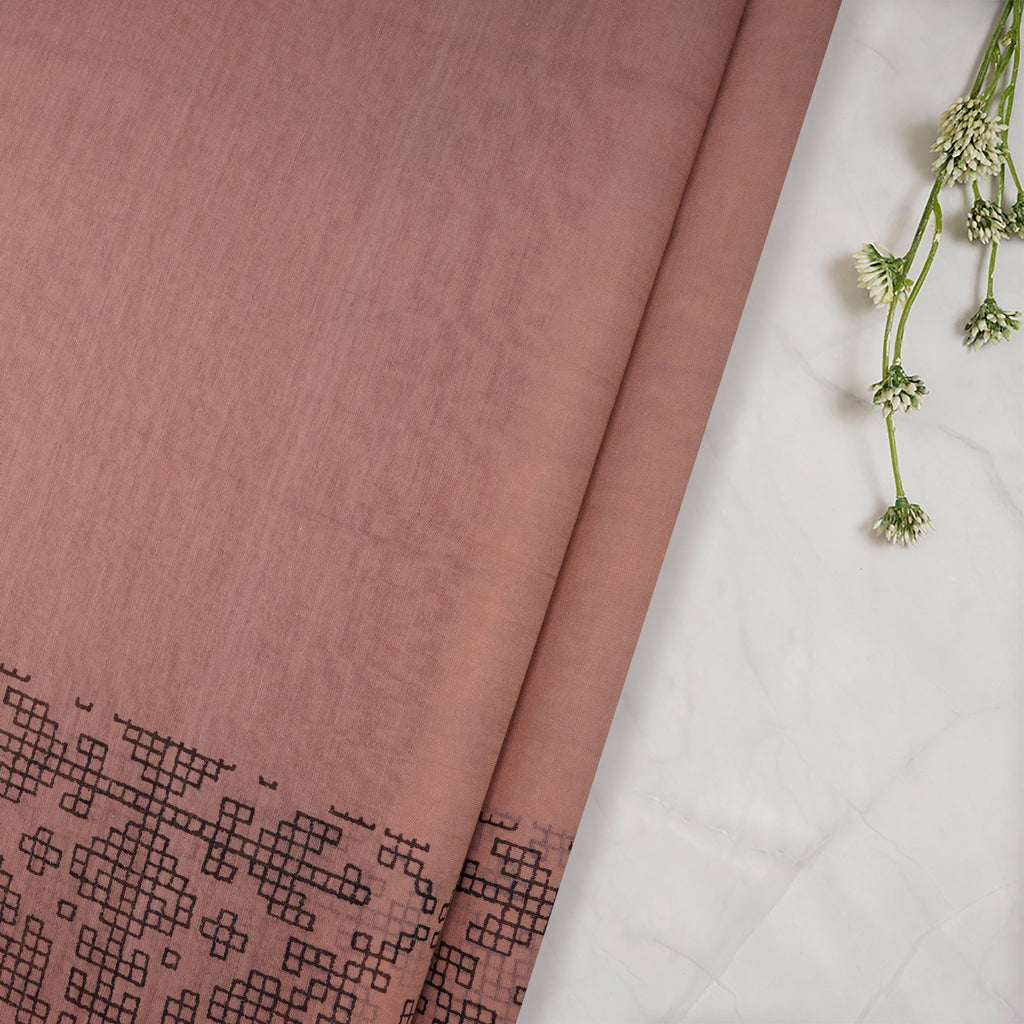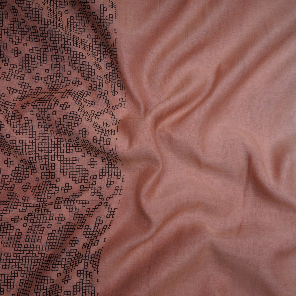 (Pre-Cut 2.00 Mtr)Dust Pink Gemetric Pattern Digital Print Fine Chanderi Fabric