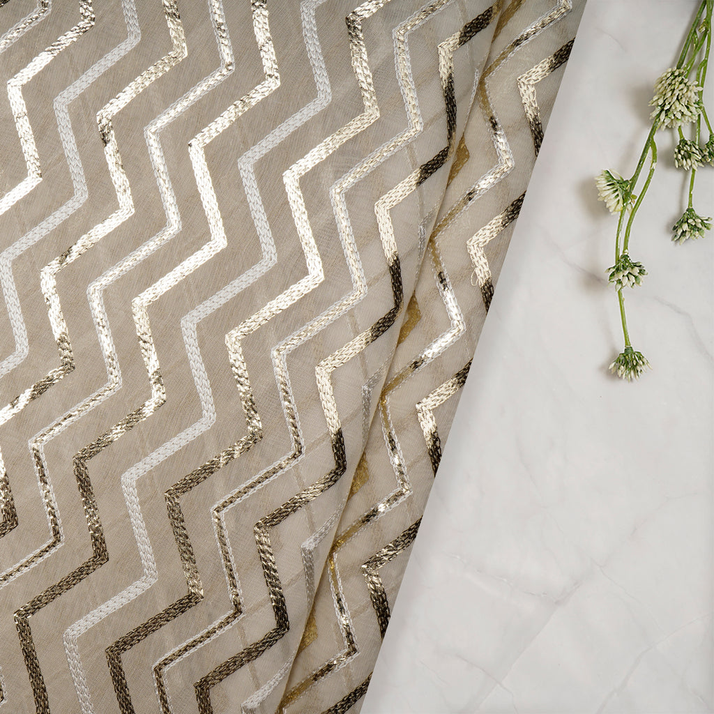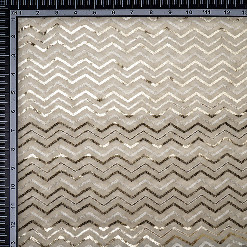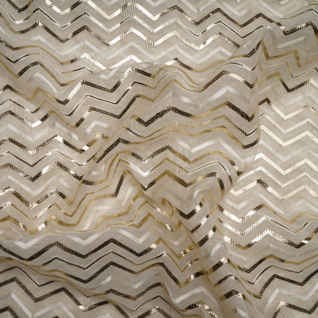 (Pre-Cut 2.00 Mtr)Off White-Gold Dyeable All Over Pattern Embroidered Chanderi Fabric