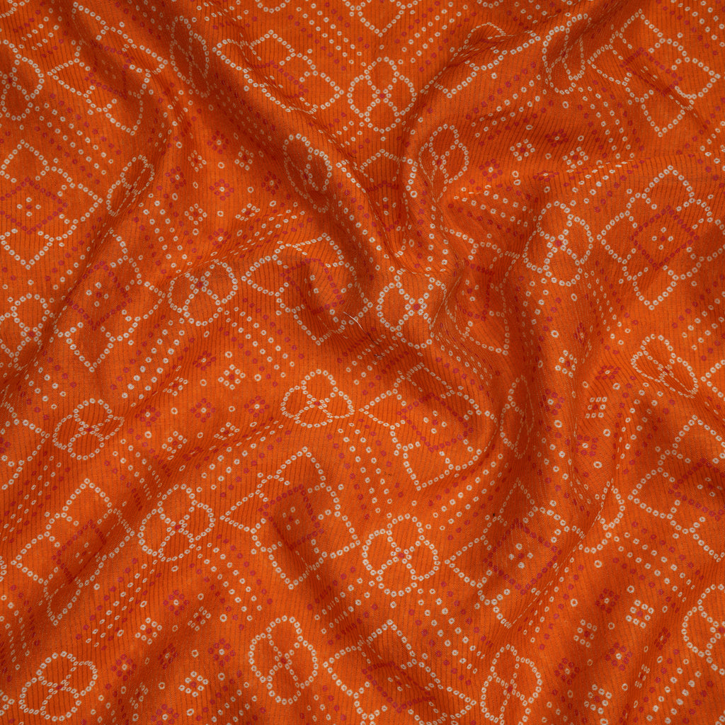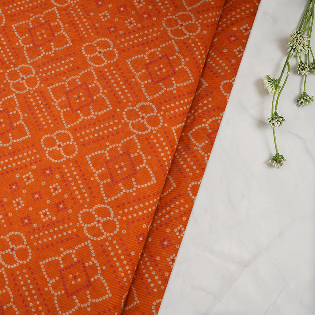 (Pre-Cut 2.00 Mtr)Orange Bandhani Parrten Digital Print Fancy Chanderi Fabric