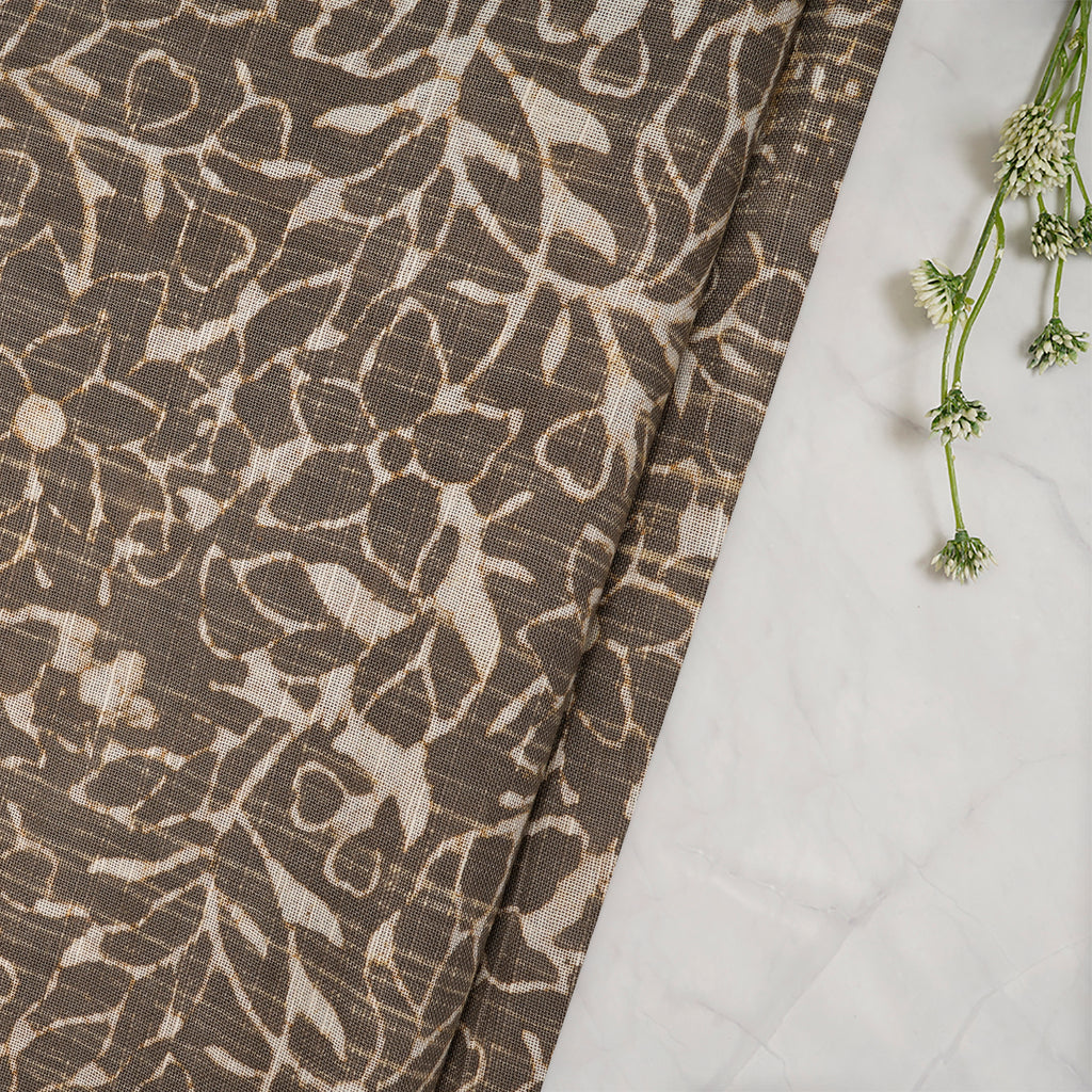 (Pre-Cut 2.00Mtr)Timber Wolf Hand Block Natural Dye Dabu Printed Cotton Slub Fabric
