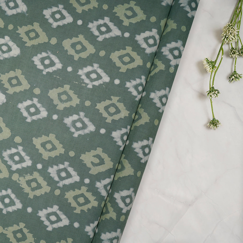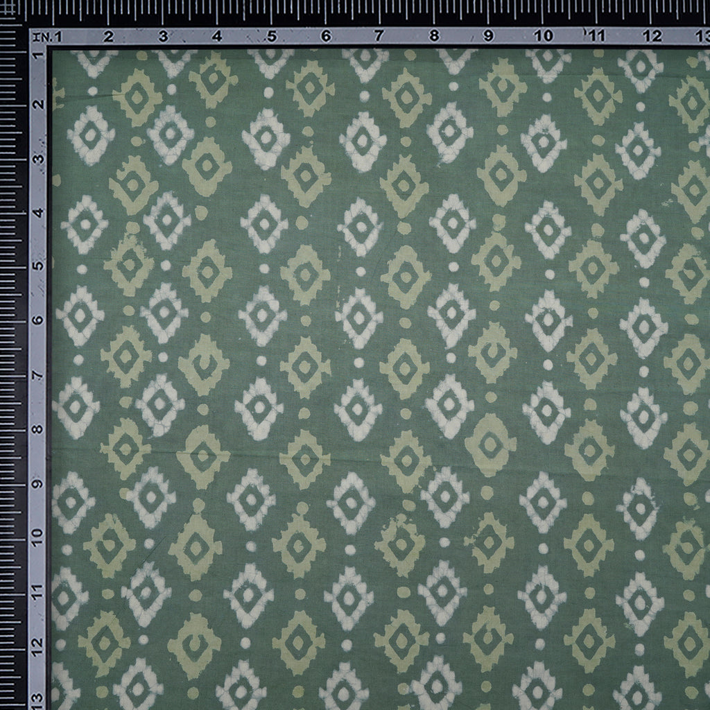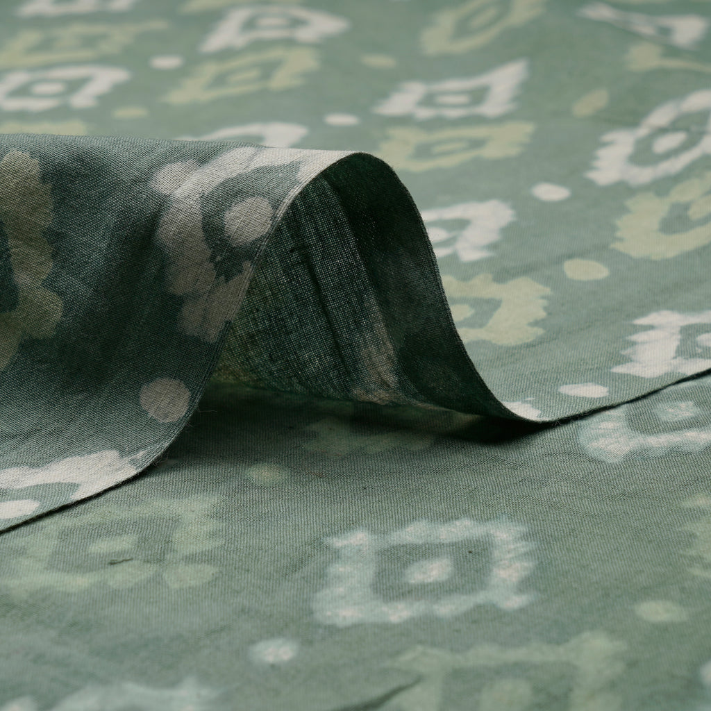 (Pre-Cut 2.20 Mtr)Green Hand Block Natural Dye Bagru Dabu Printed Cotton Fabric