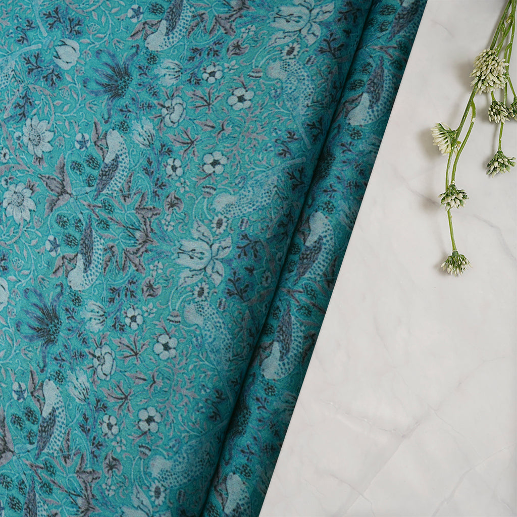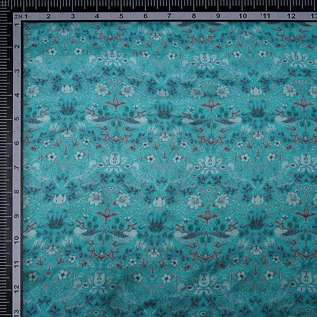 (Pre-Cut 2.20 Mtr)Sky Blue Floral Pattern Digital Print Satin Chiffon Fabric