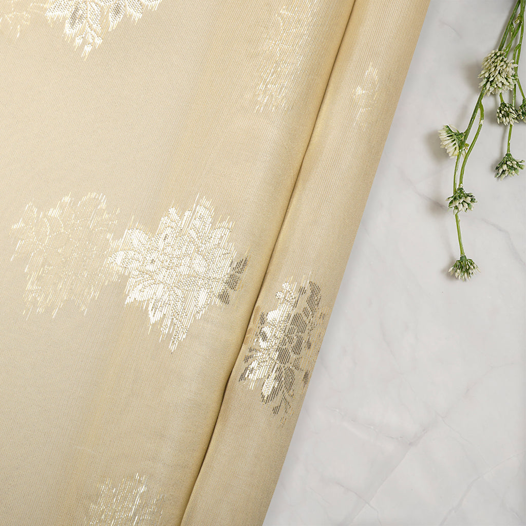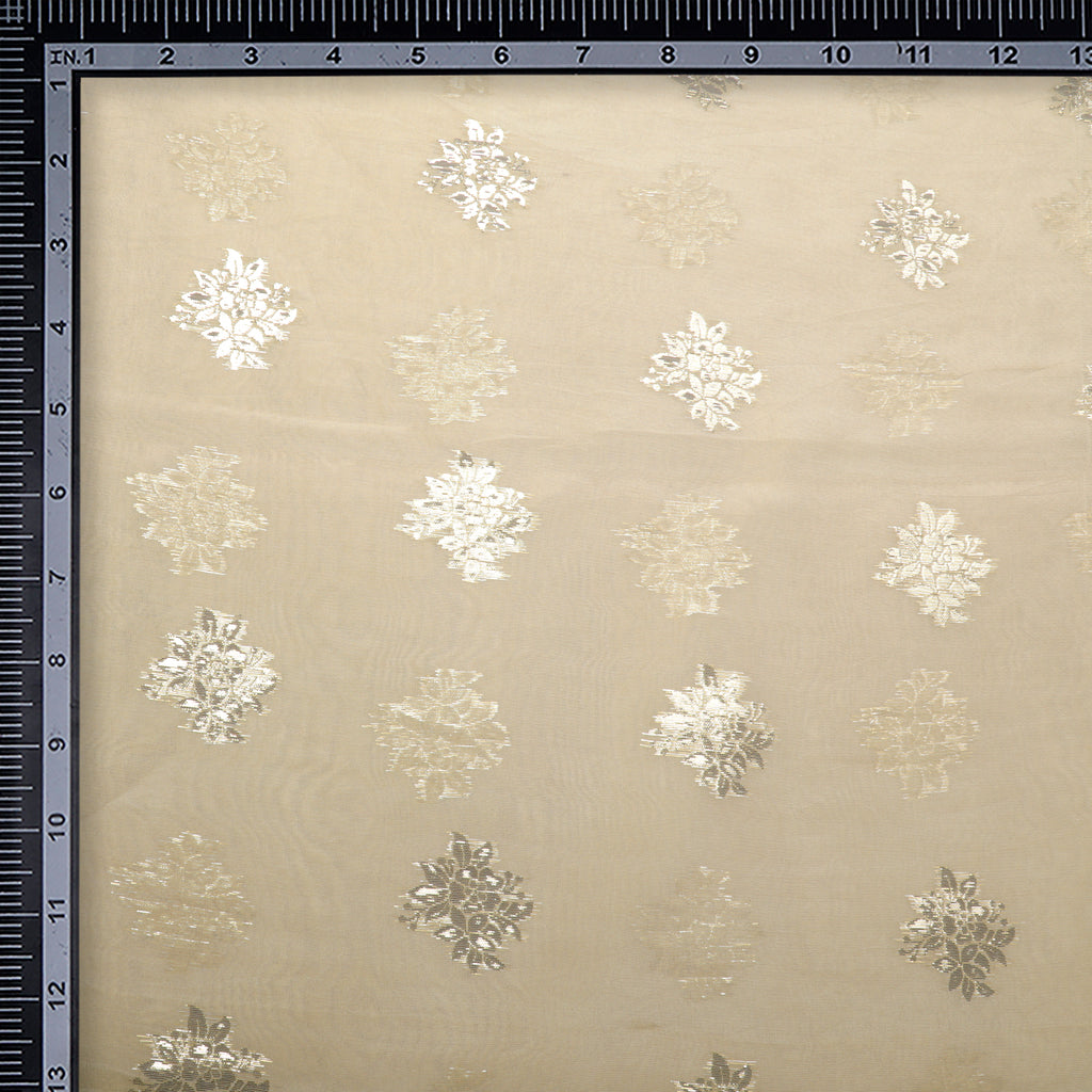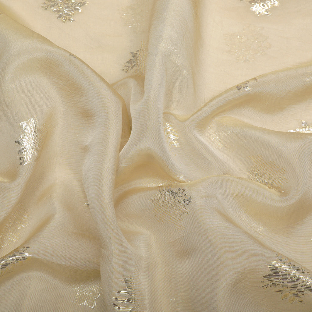 (Pre-Cut 2.25 Mtr)Gold Booti Pattern Dyeable Fancy Viscose Organza Jacquard Tissue Fabric