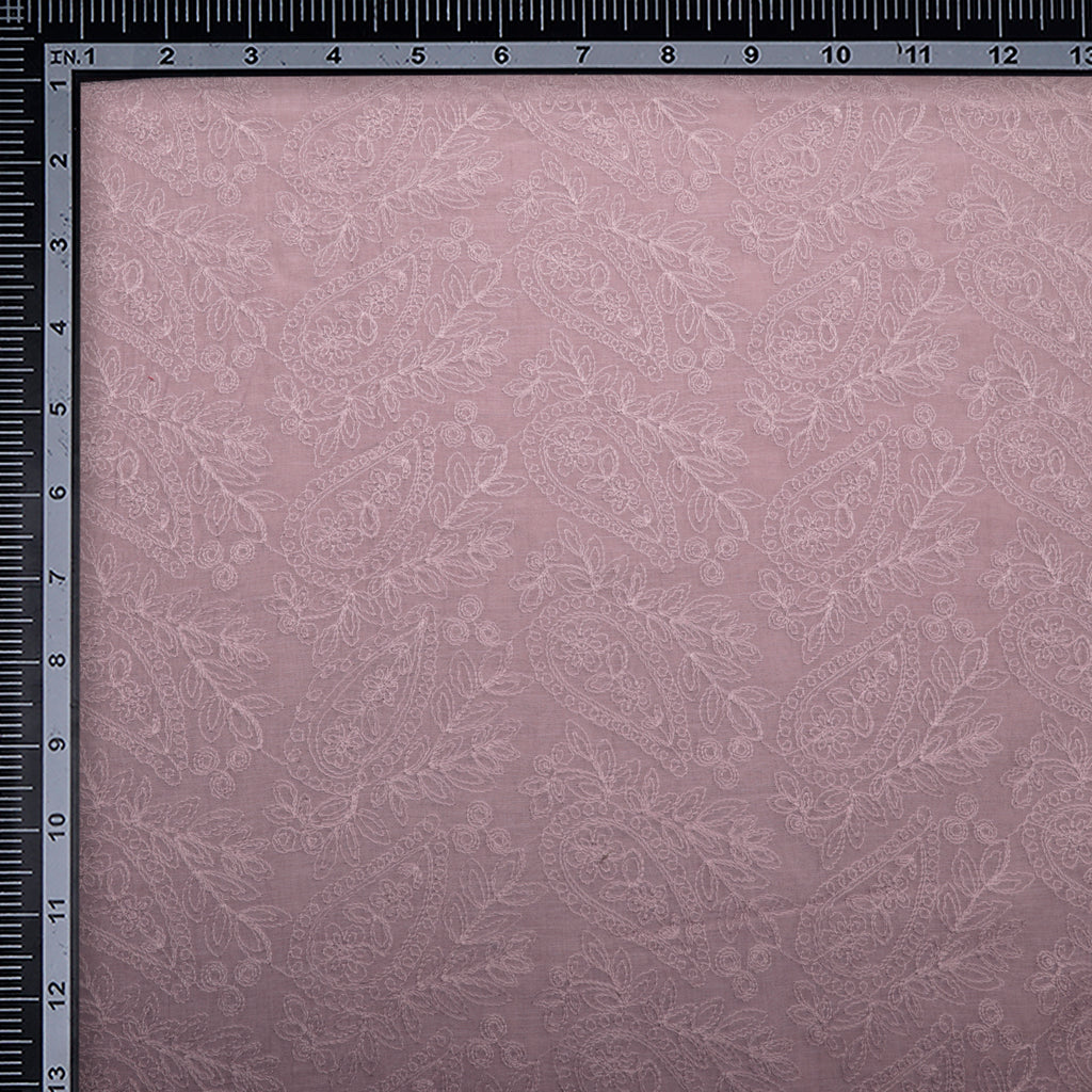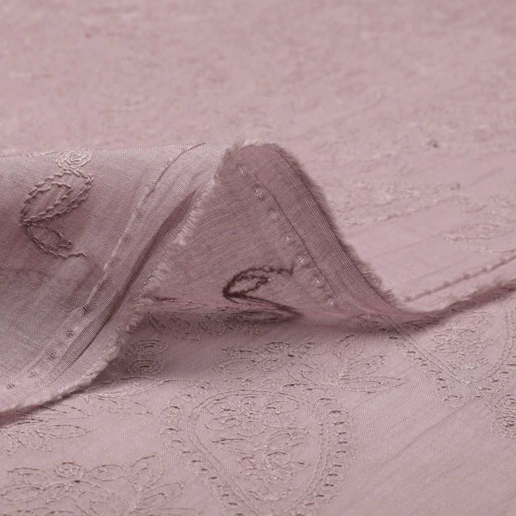 (Pre-Cut 2.25 Mtr)Lavender Paisely Pattern Embroidered Fine Chanderi Fabric