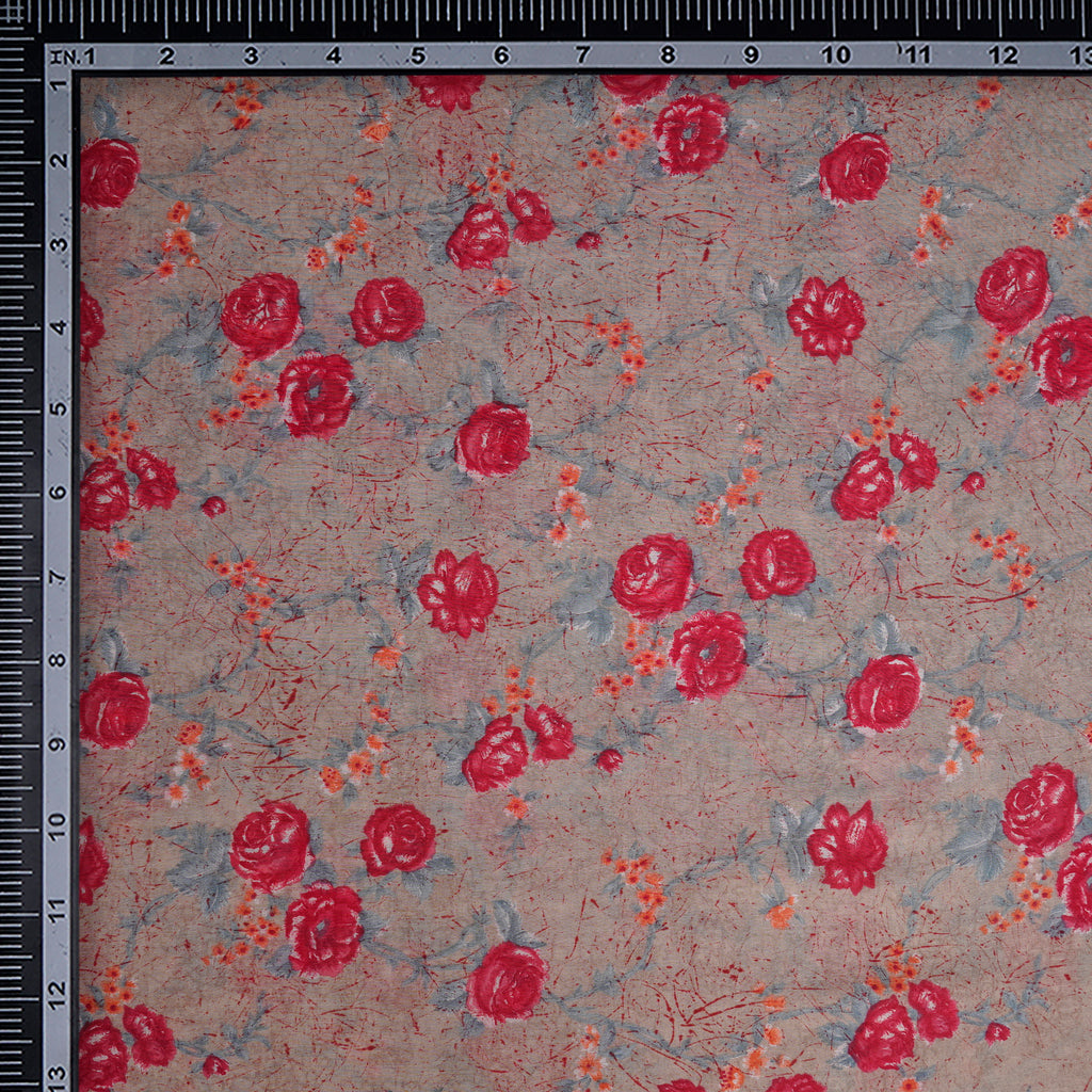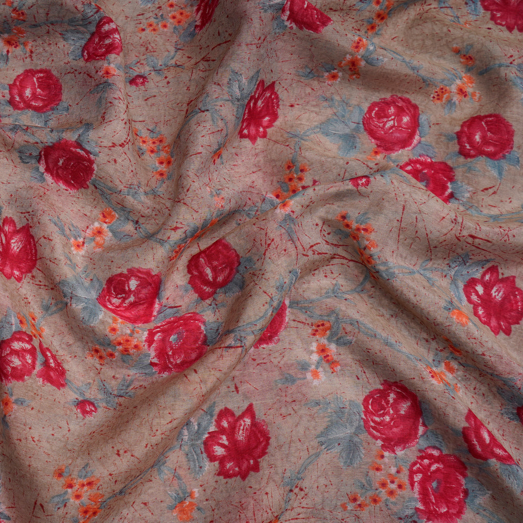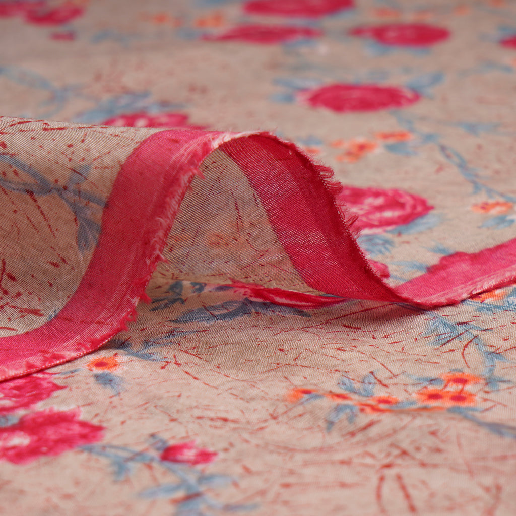 (Pre-Cut 2.40Mtr)Light Orange-Red Floral Pattern Printed Fine Chanderi Fabric