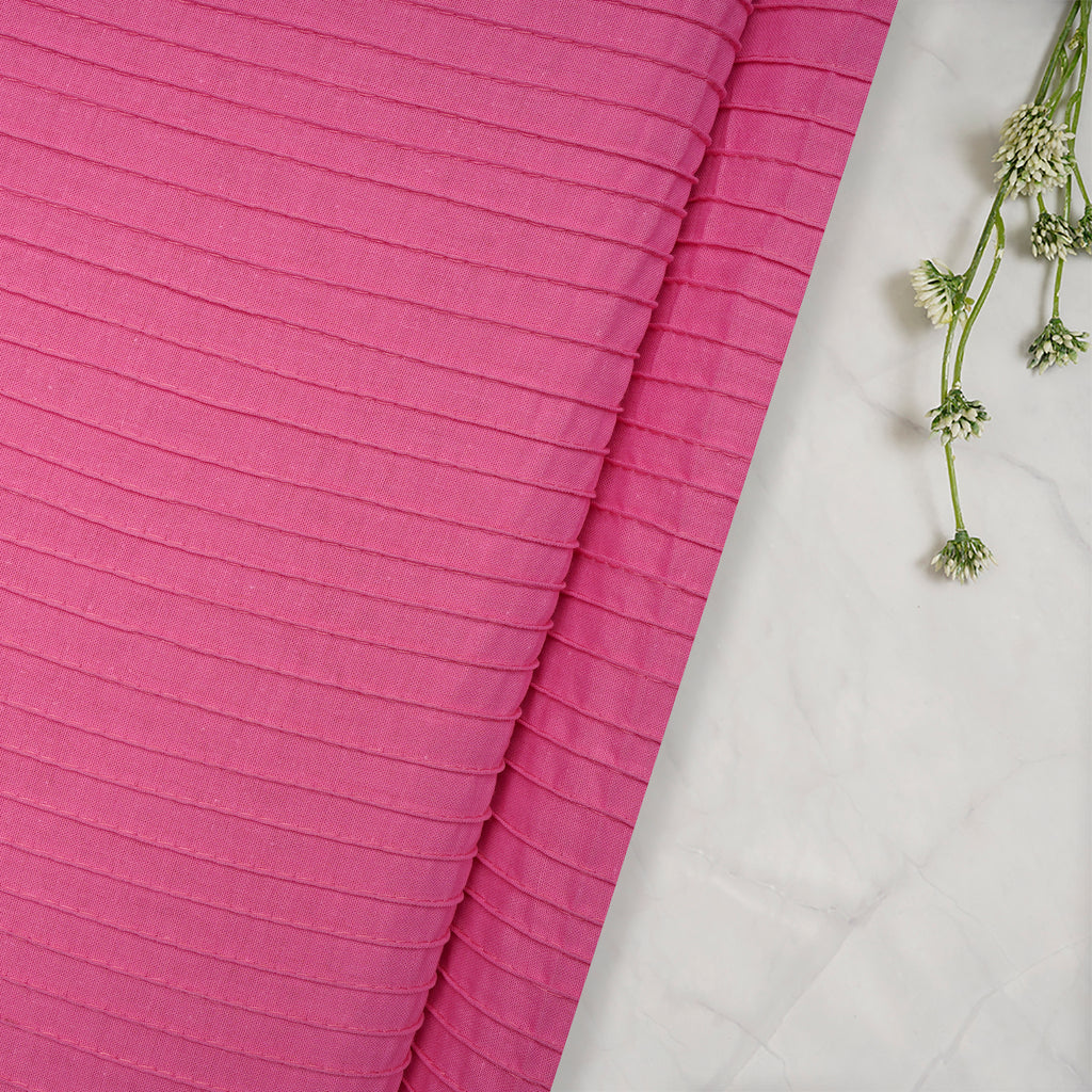 (Pre-Cut 2.50 Mtr)Pink Cosmos Pintuck Pattern High Twist Cotton Voile Fabric