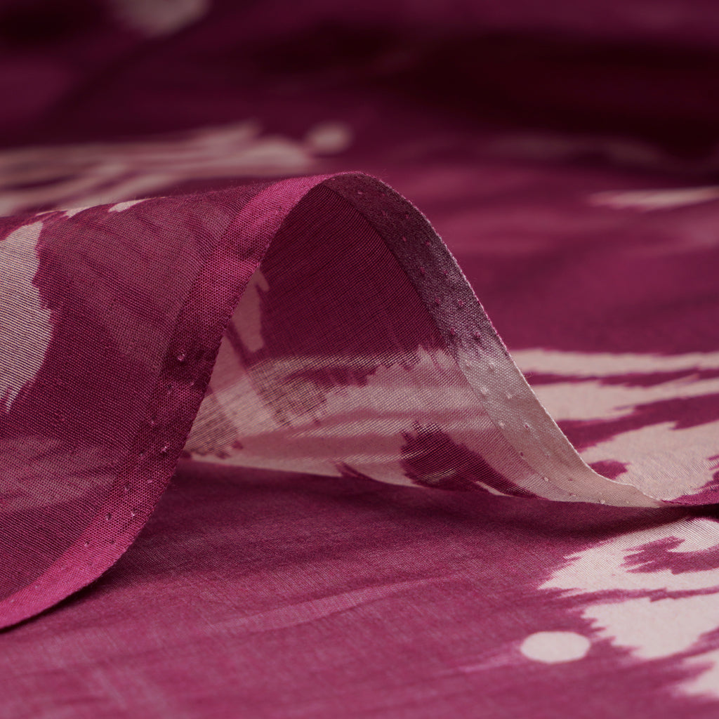 (Pre-Cut 2.60Mtr)Wine Ikat Pattern Digital Print Chanderi Fabric