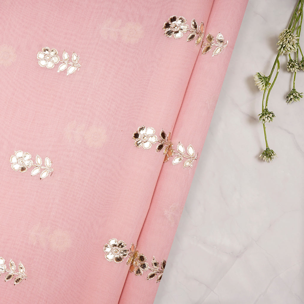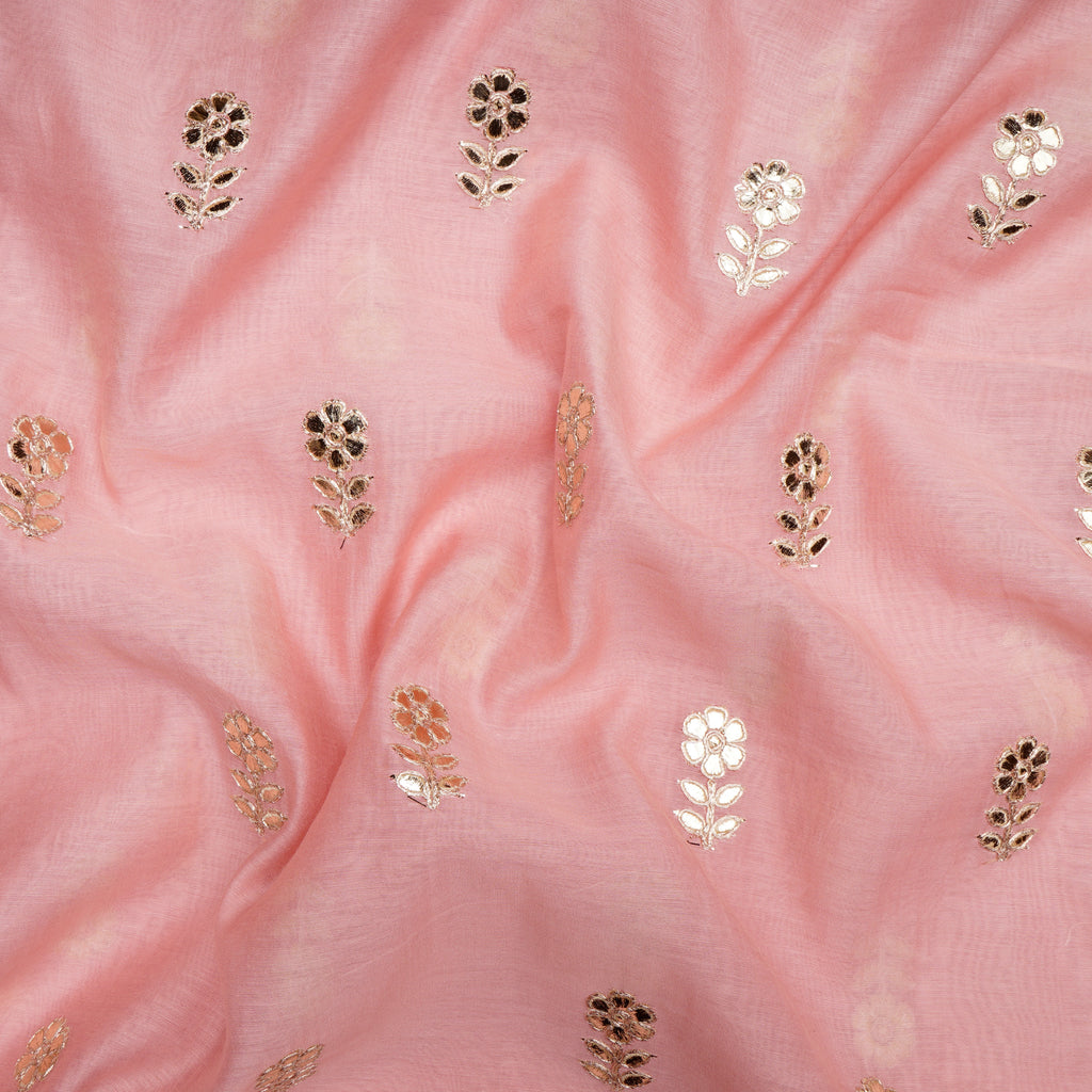 (Pre-Cut 2.70 Mtr)First Blush Motif Pattern Thread Embroidered Chanderi Fabric