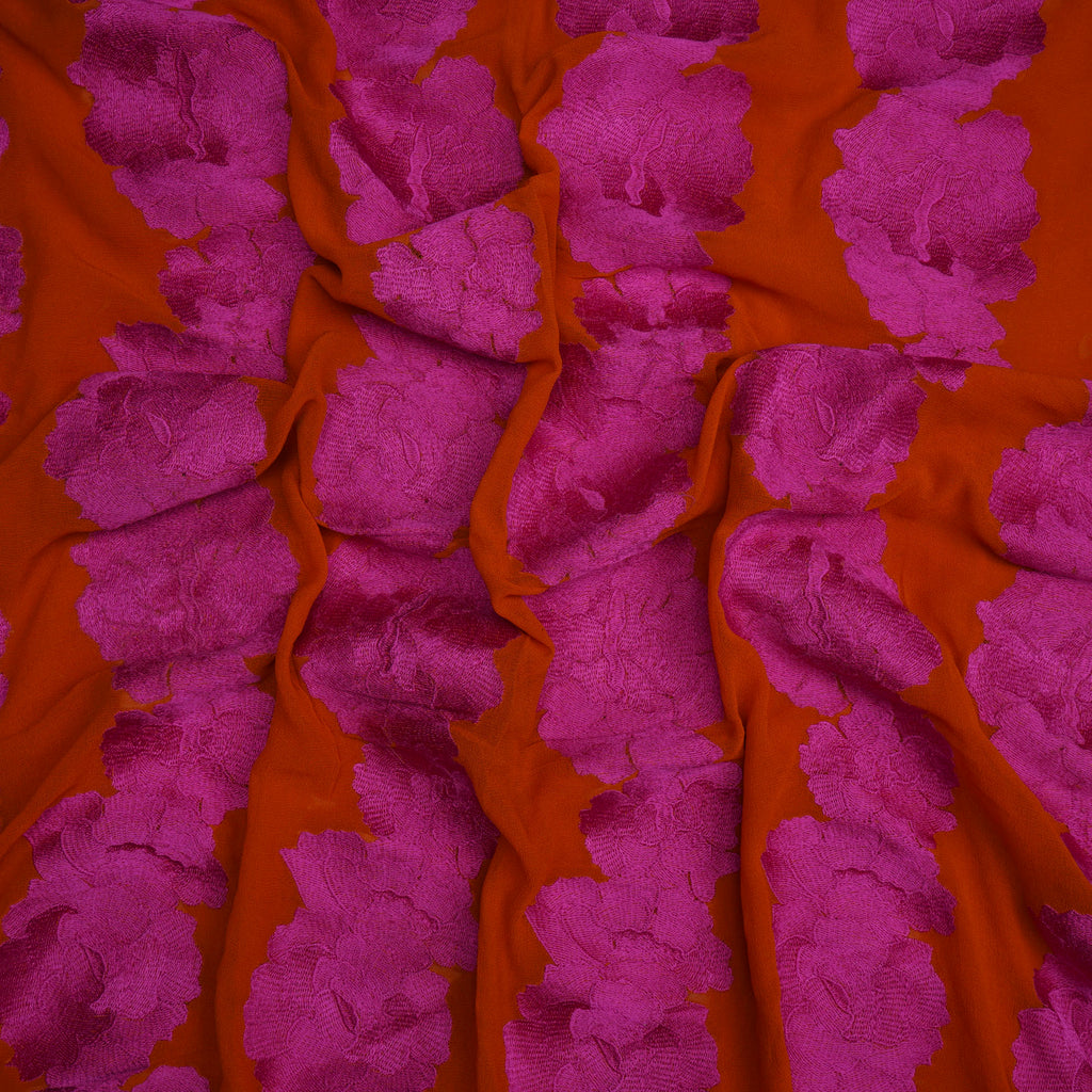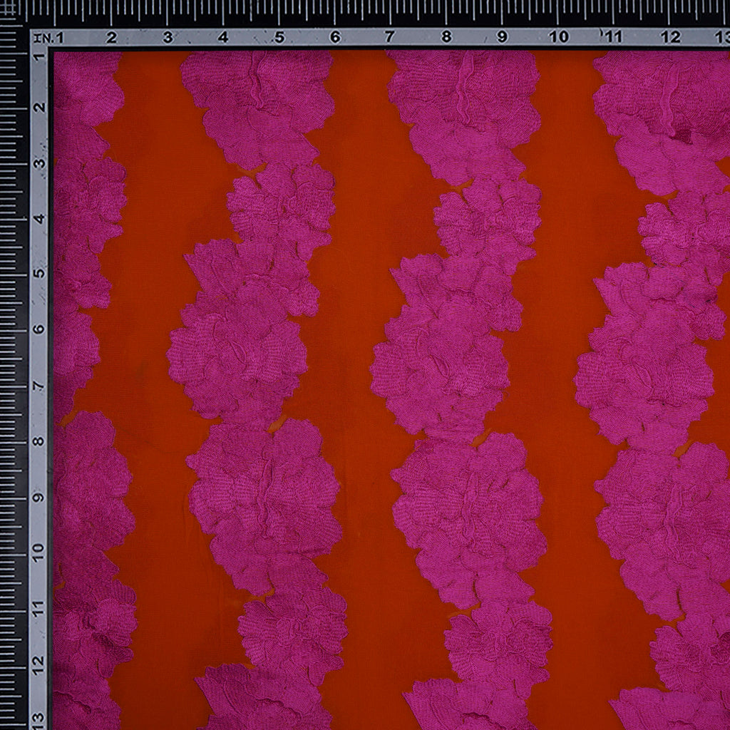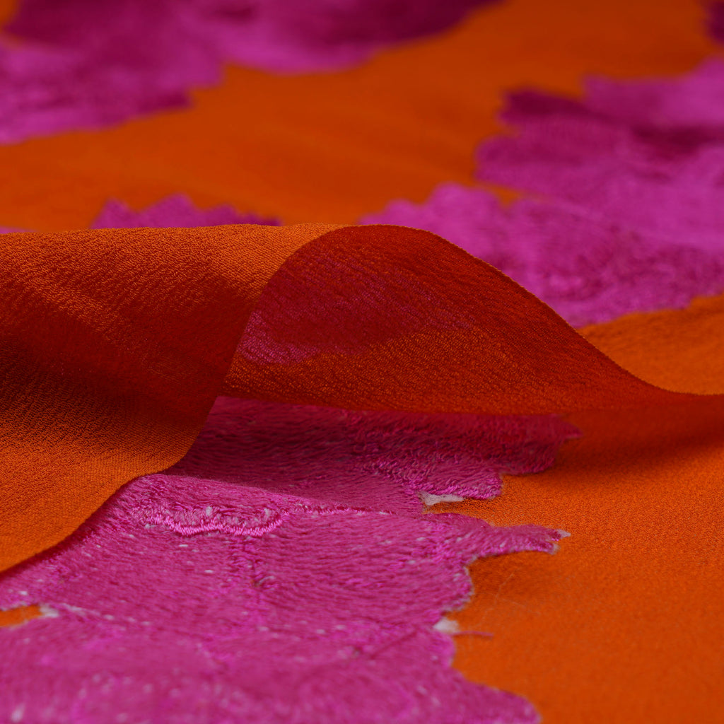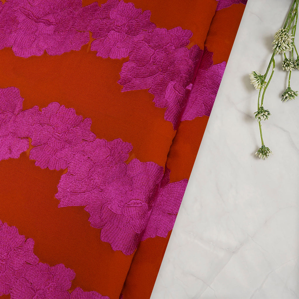 (Pre-Cut 2.80 Mtr)Pink-Orange Color Embroidered Georgette Silk Fabric