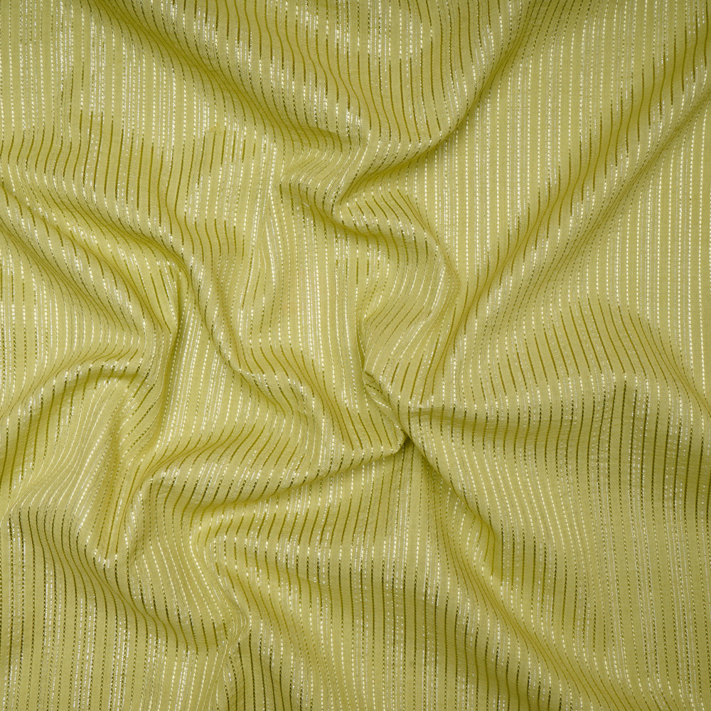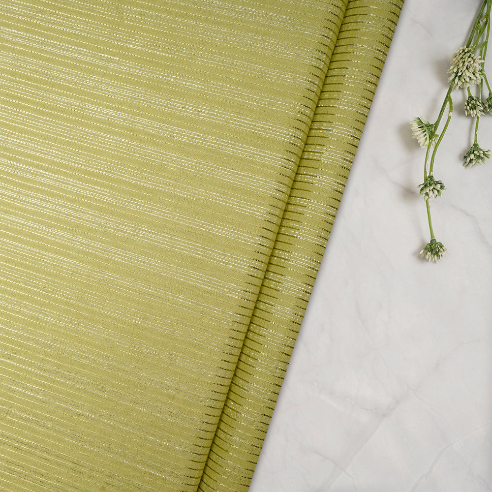 (Pre-Cut 3.00 Mtr)Green Color Embroidered Plain Cotton Fabric With Lurex Striped Fabric