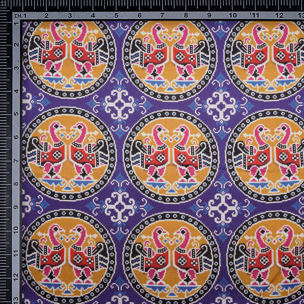 (Pre-Cut 3.00Mtr)Purple Corallites Patola Pattern Digital Print Cotton Satin Fabric