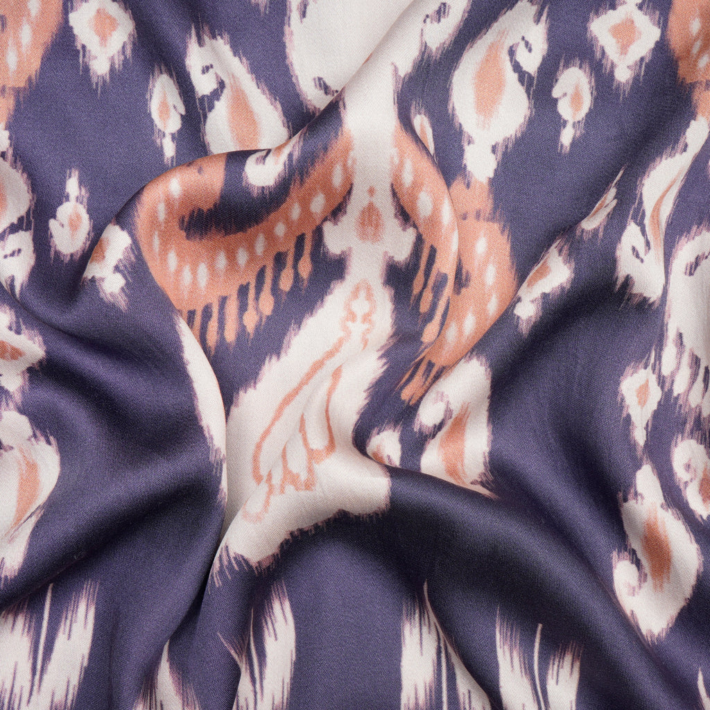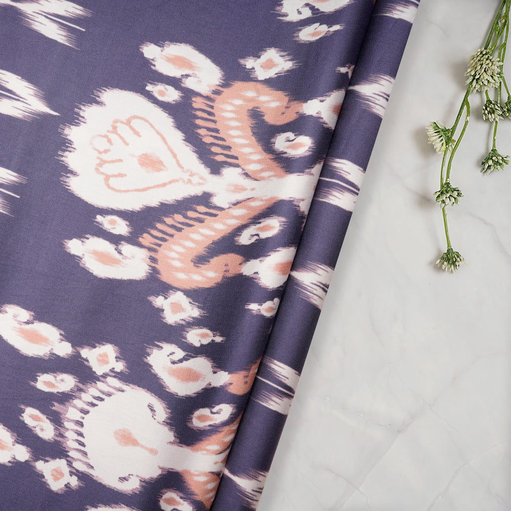 (Pre-Cut 3.00Mtr)Voilet-Beige Ikat Pattern Digital Pattern Maple Silk Fabric