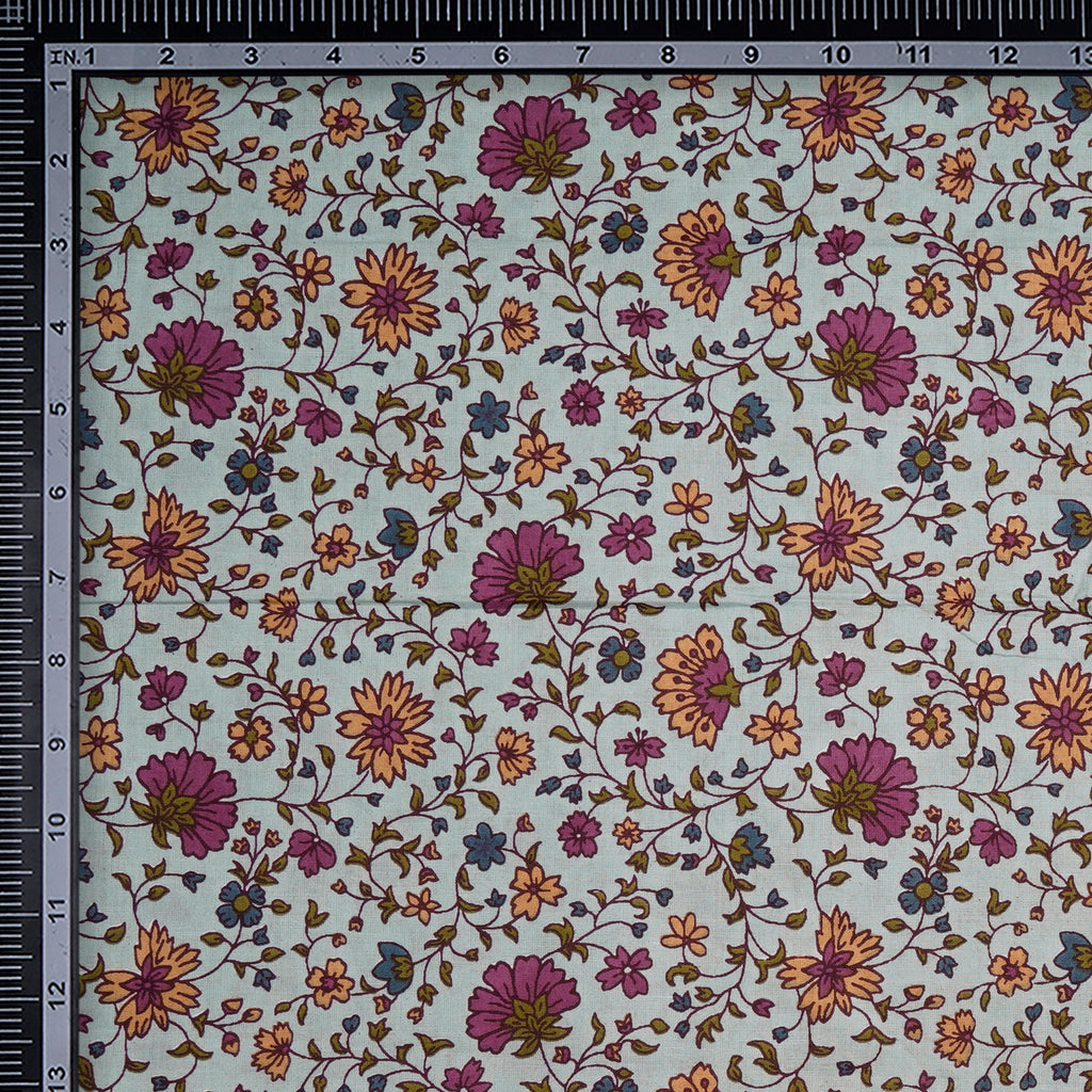 (Pre-Cut 3.10 Mtr)Multi Color Floral Pattern Screen Print Cotton Fabric