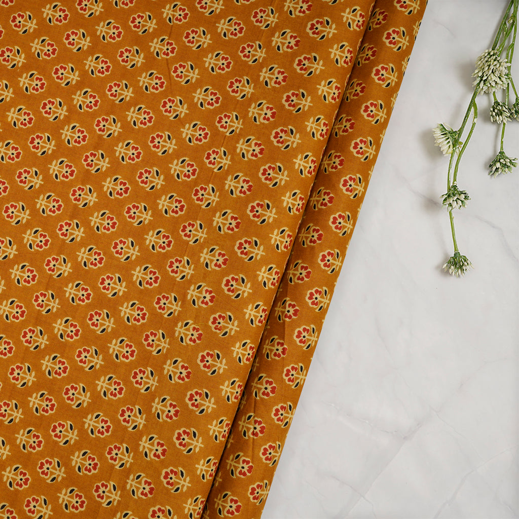 (Pre-Cut 3.10 Mtr)Mustard Hand Block Printed Cotton Fabric