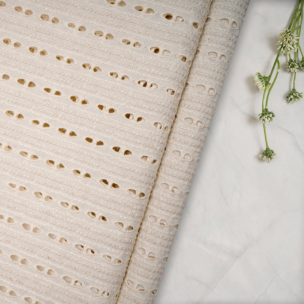 (Pre-Cut 3.10 Mtr)Off White Color Embroidered Cotton Fabric