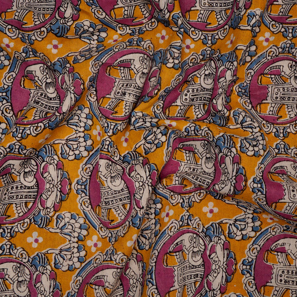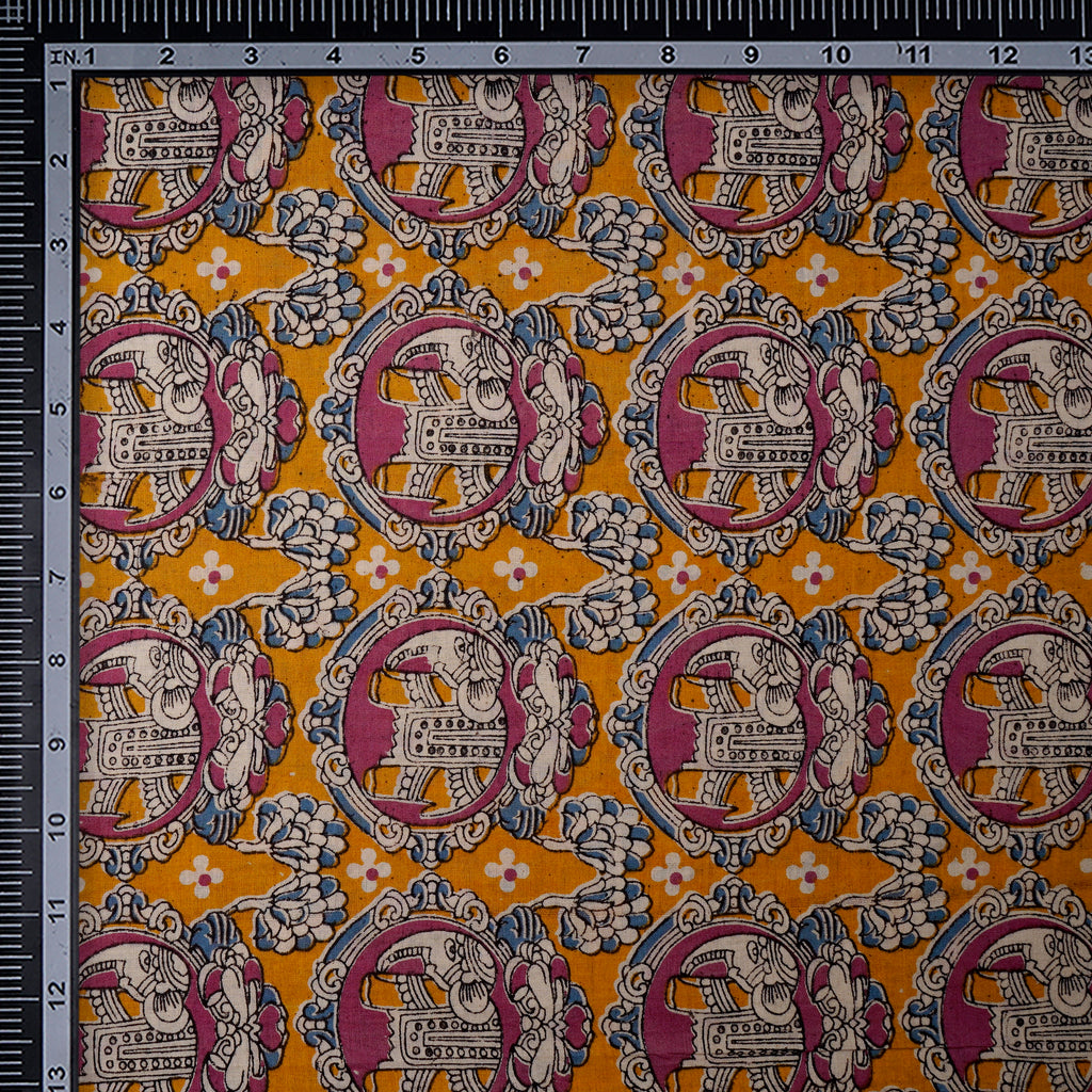(Pre-Cut 3.25 Mtr)Multi Color Floral Pattern Screen Printed kalamkari Cotton Fabric