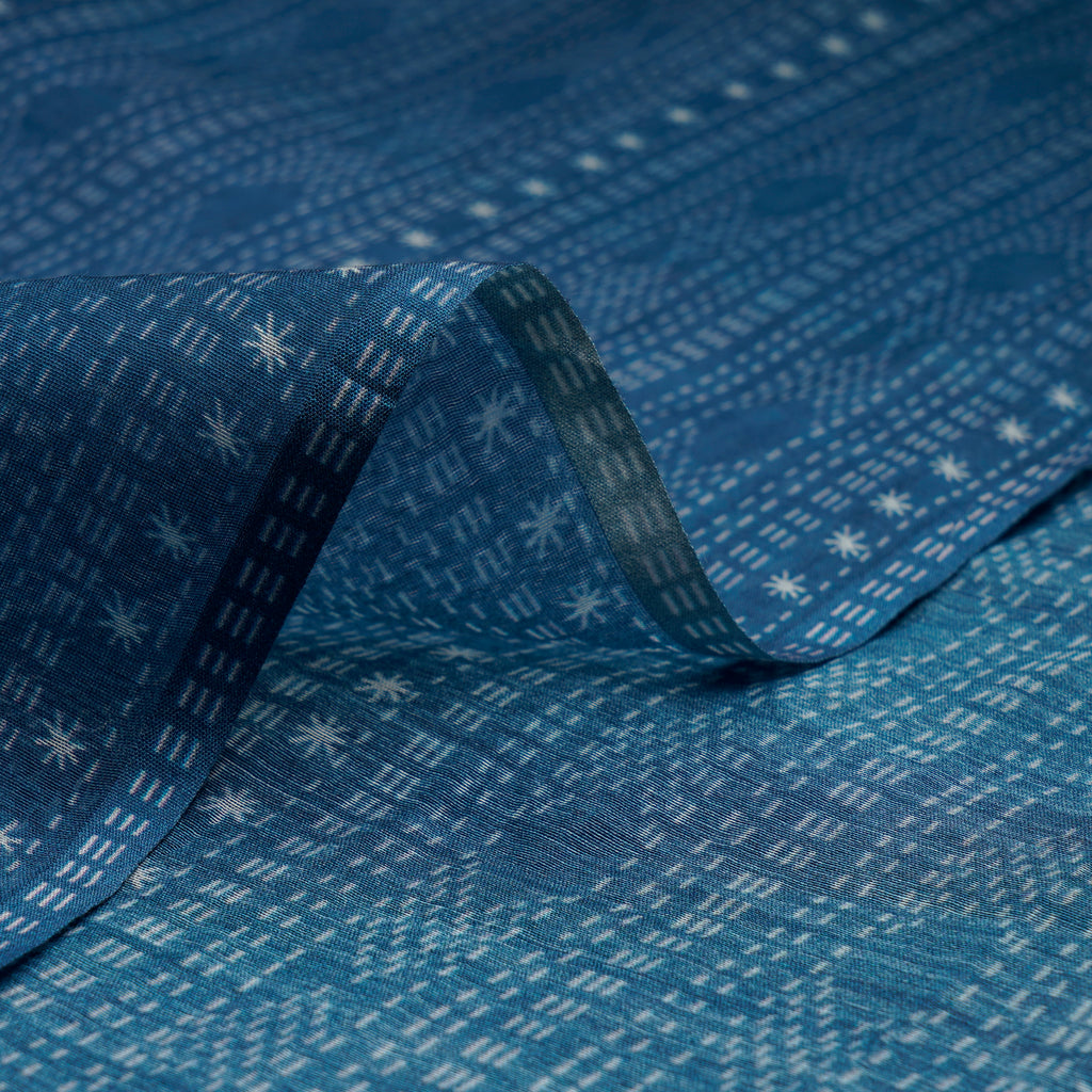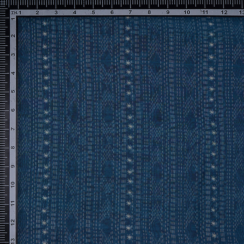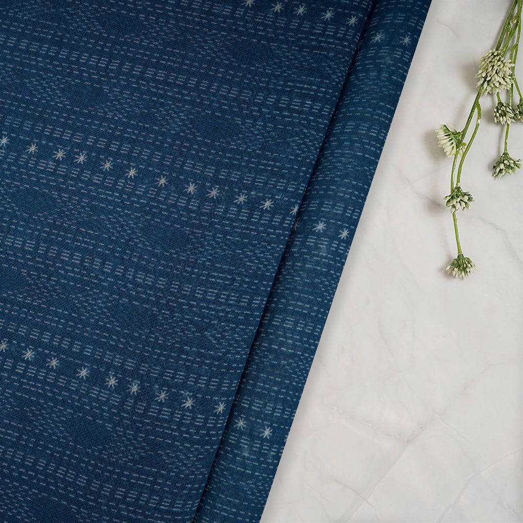 (Pre-Cut 3.35 Mtr) Navy Blue All Over Pattern Digital Print Chanderi Fabric