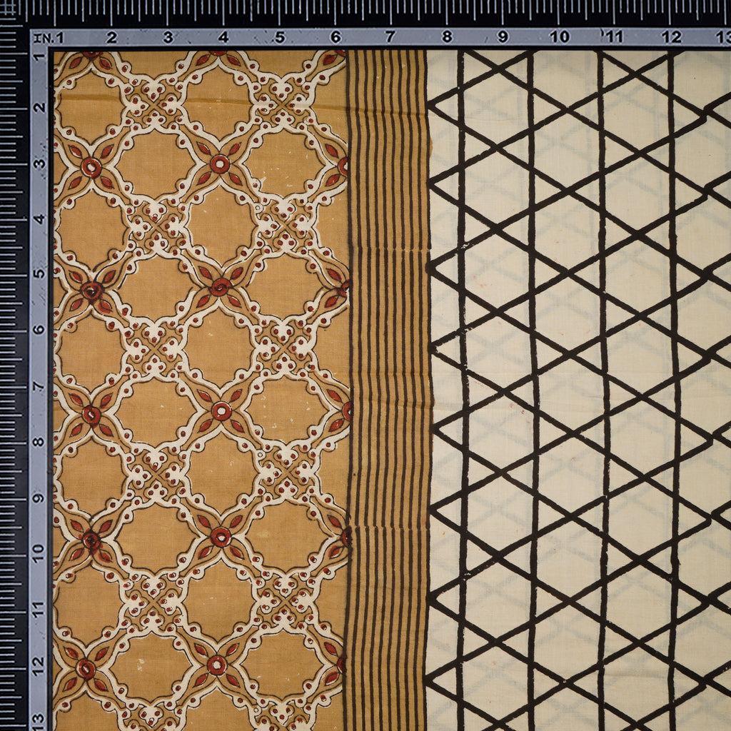 (Pre-Cut 3.35 Mtr)Beige Natural Dye Hand Block Ajrak Printed Cotton Fabric