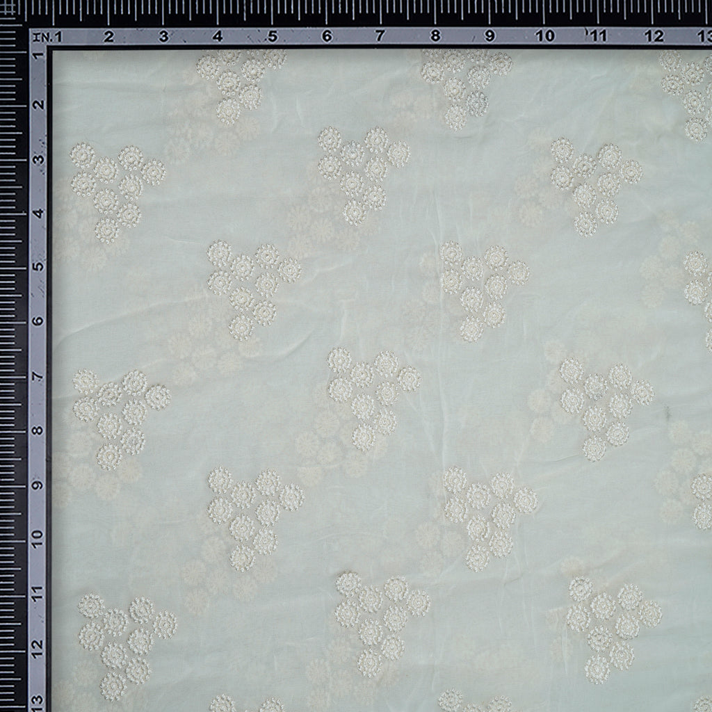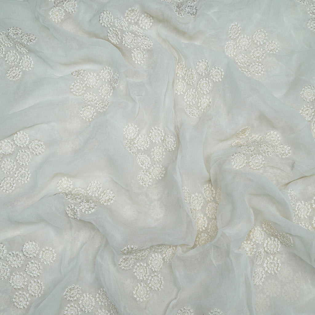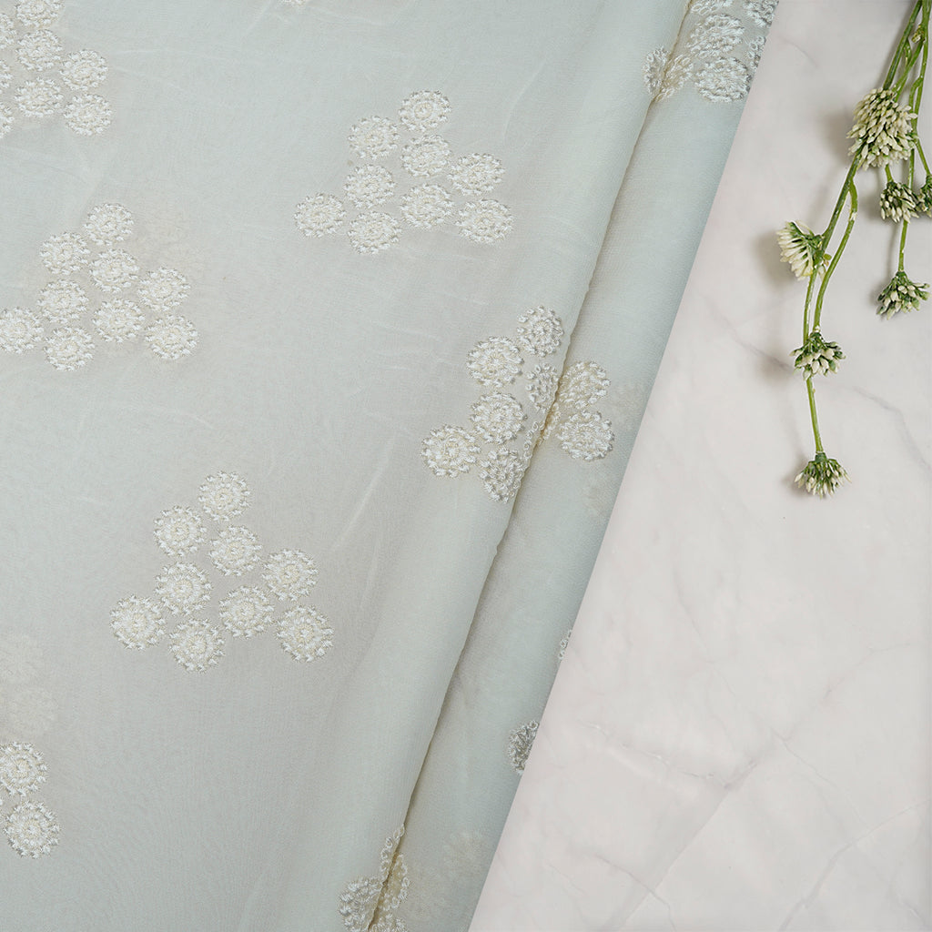 (Pre-Cut 3.40 Mtr)Off-White Color Embroidered Viscose Georgette Fabric