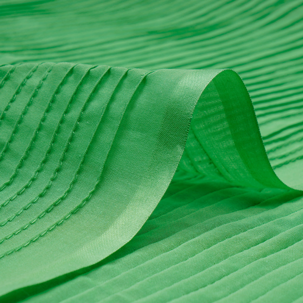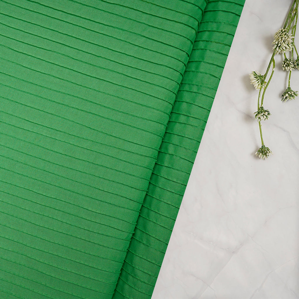 (Pre-Cut 3.40 Mtr)Summer Green Pintuck Pattern High Twist Cotton Voile Fabric