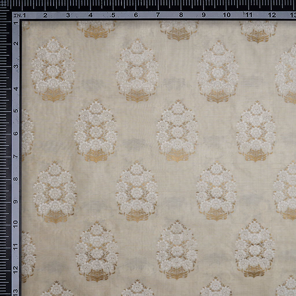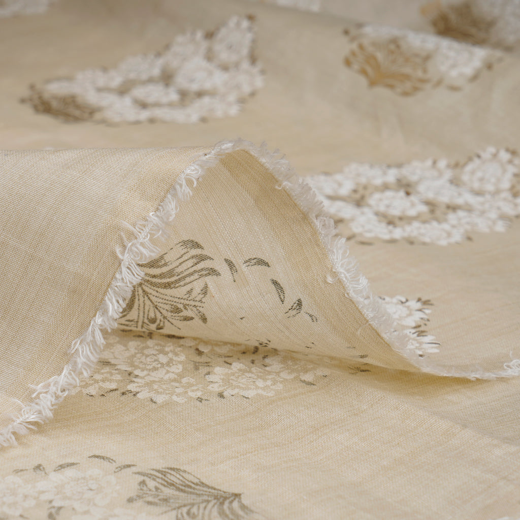 (Pre-Cut 3.40Mtr)Beige Color Printed Poly Viscose Fabric