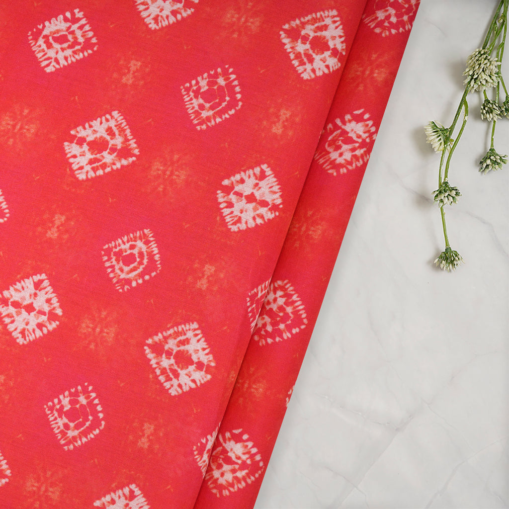 (Pre-Cut 3.40Mtr)Paradise Pink Bandhani Pattern Digital Print Voile Cotton Fabric