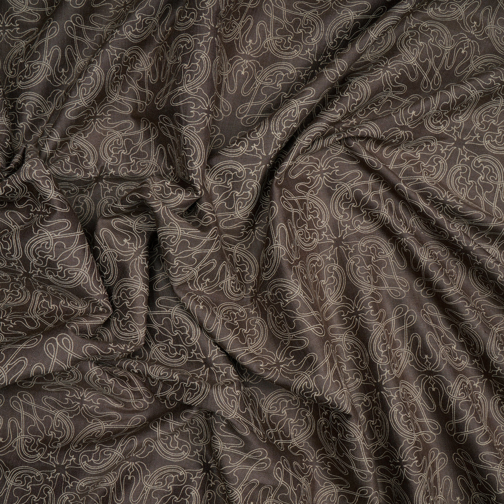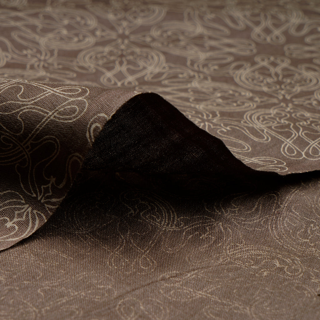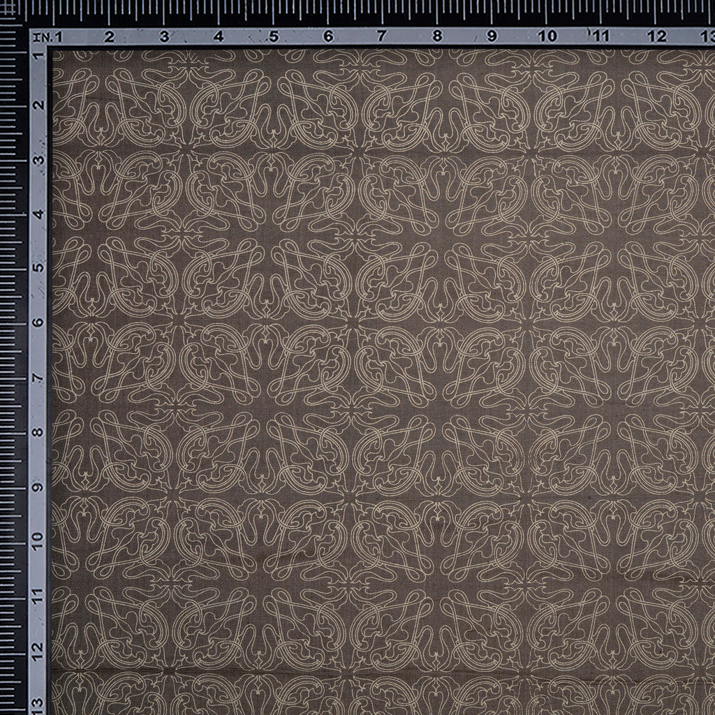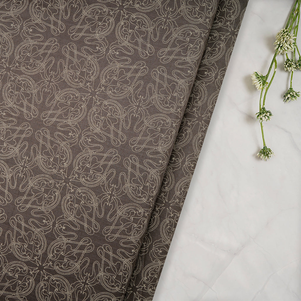 (Pre-Cut 3.50 Mtr)Grey All Over Pattern Screen Printed Natural Silk Fabric
