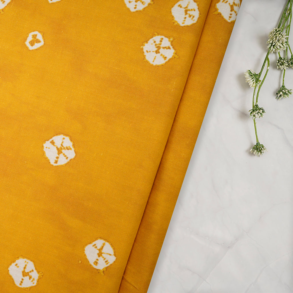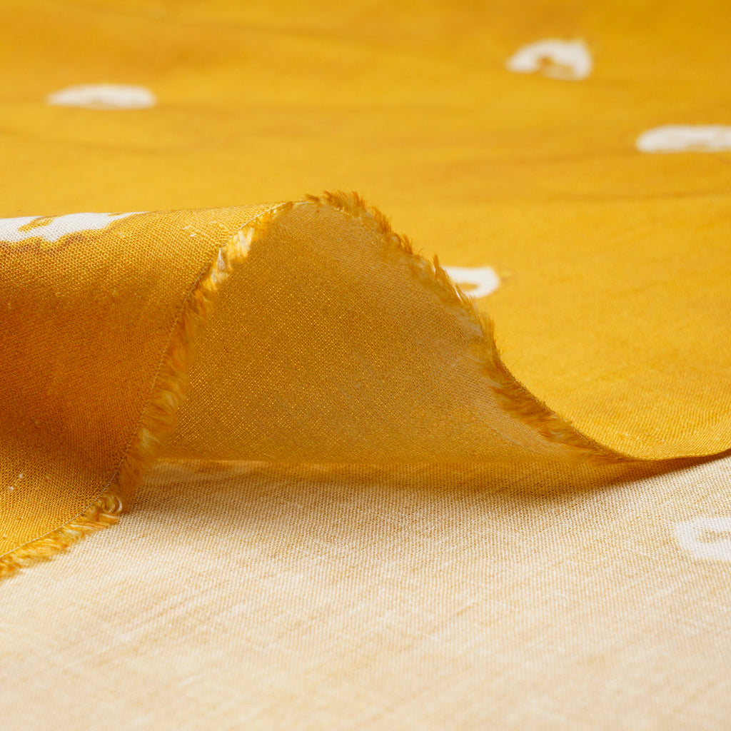 (Pre-Cut 3.50Mtr)Yellow Bandhani Pattern Digital Print Fancy Linen Fabric