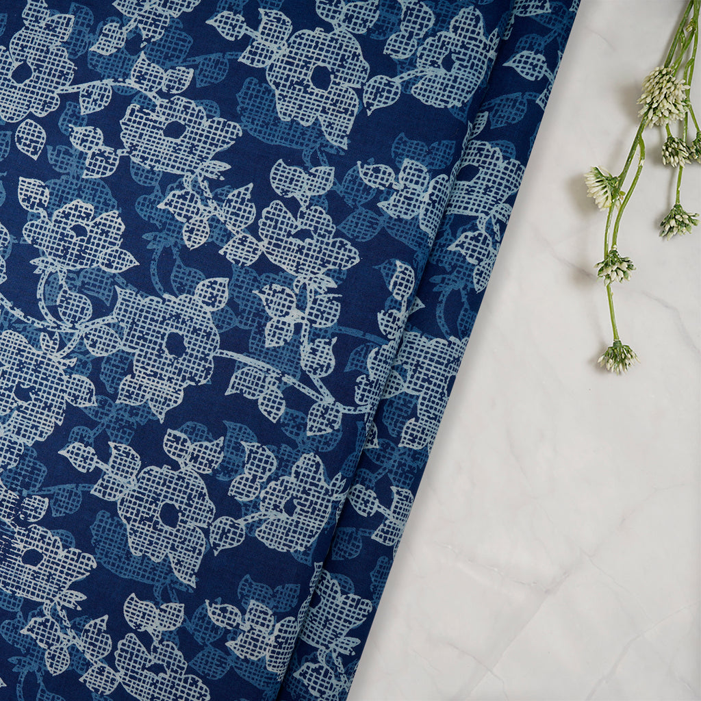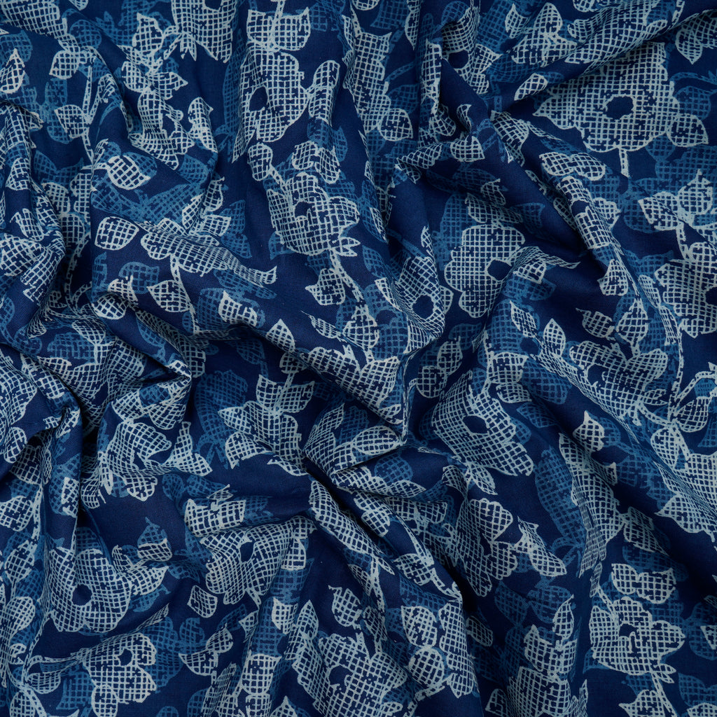 (Pre-Cut 3.60Mtr)Blue Hand Block Bagru Natural Dye Indigo Printed Cotton Fabric