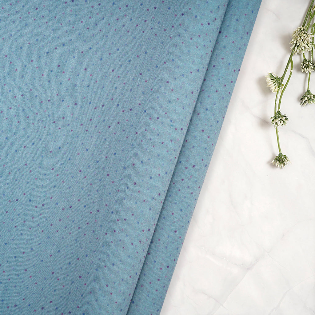 (Pre-Cut 3.70Mtr)Starlight Blue All Over Pattern Digital Print Chanderi Fabric
