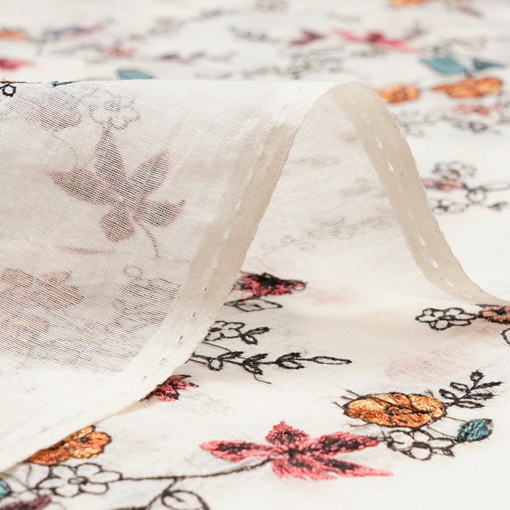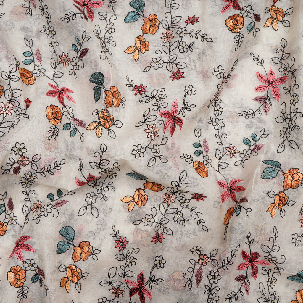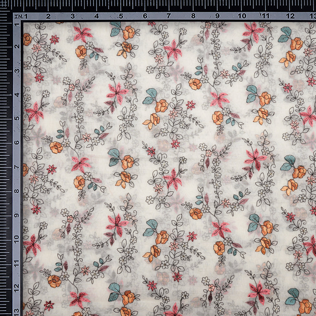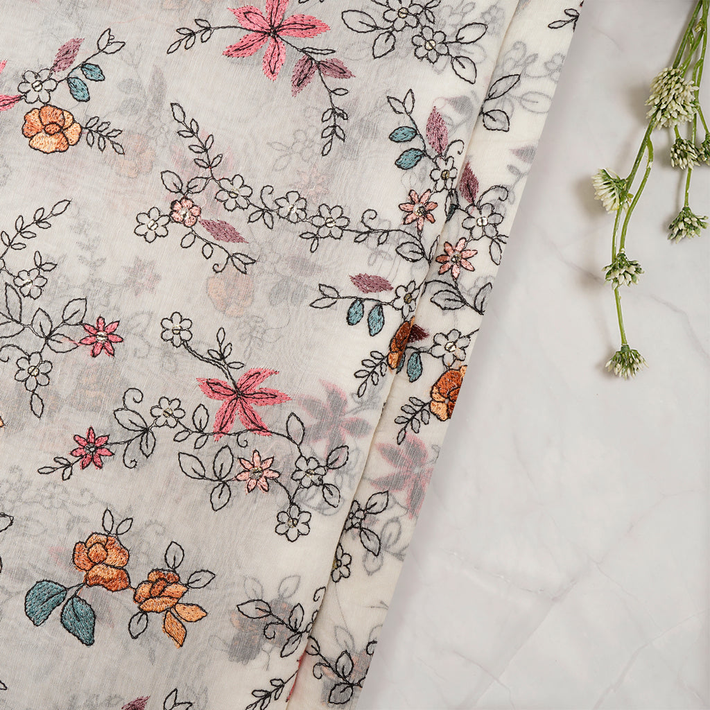 (Pre-Cut 3.80 Mtr)Multi Color All Over Pattern Thread Embroidered Chanderi Fabric