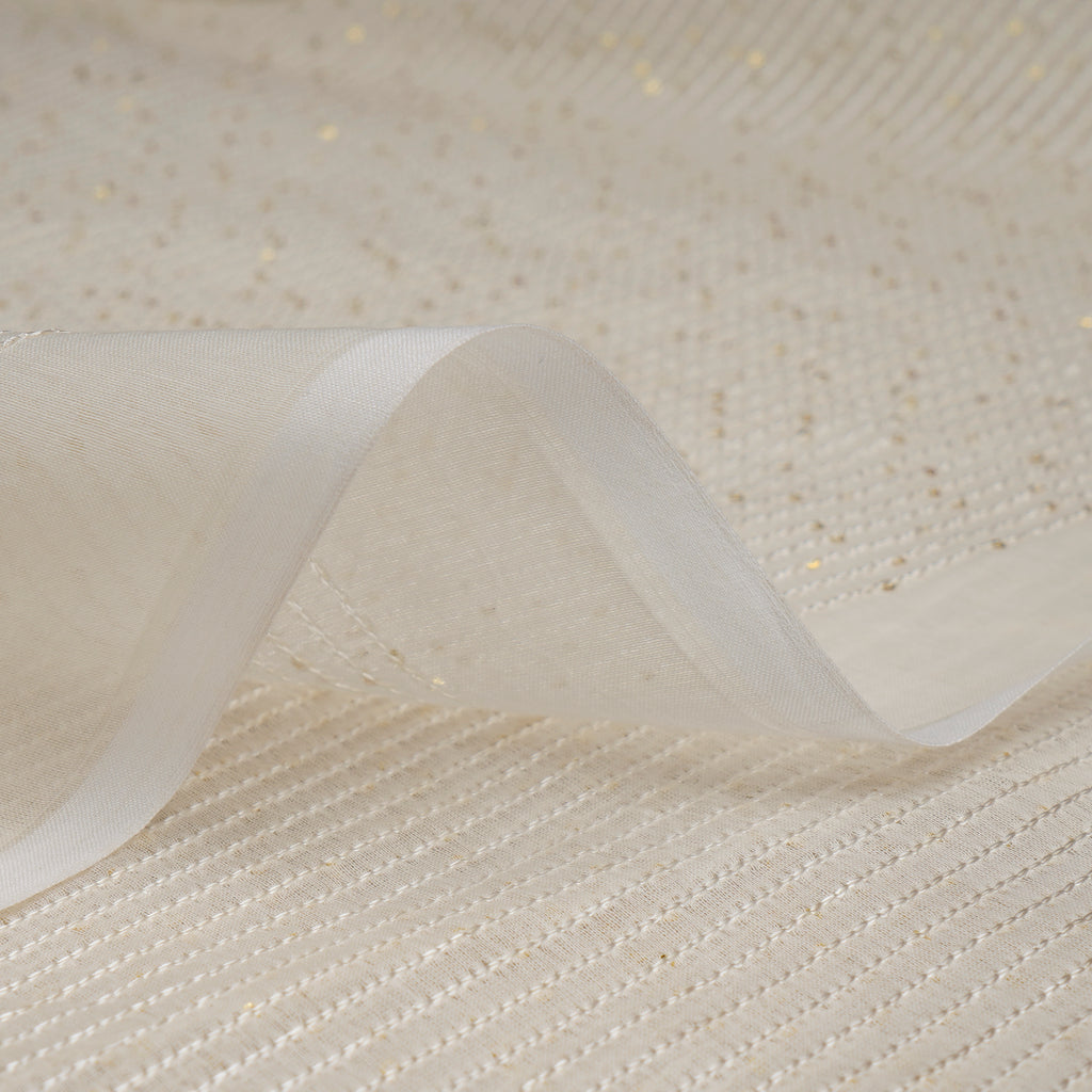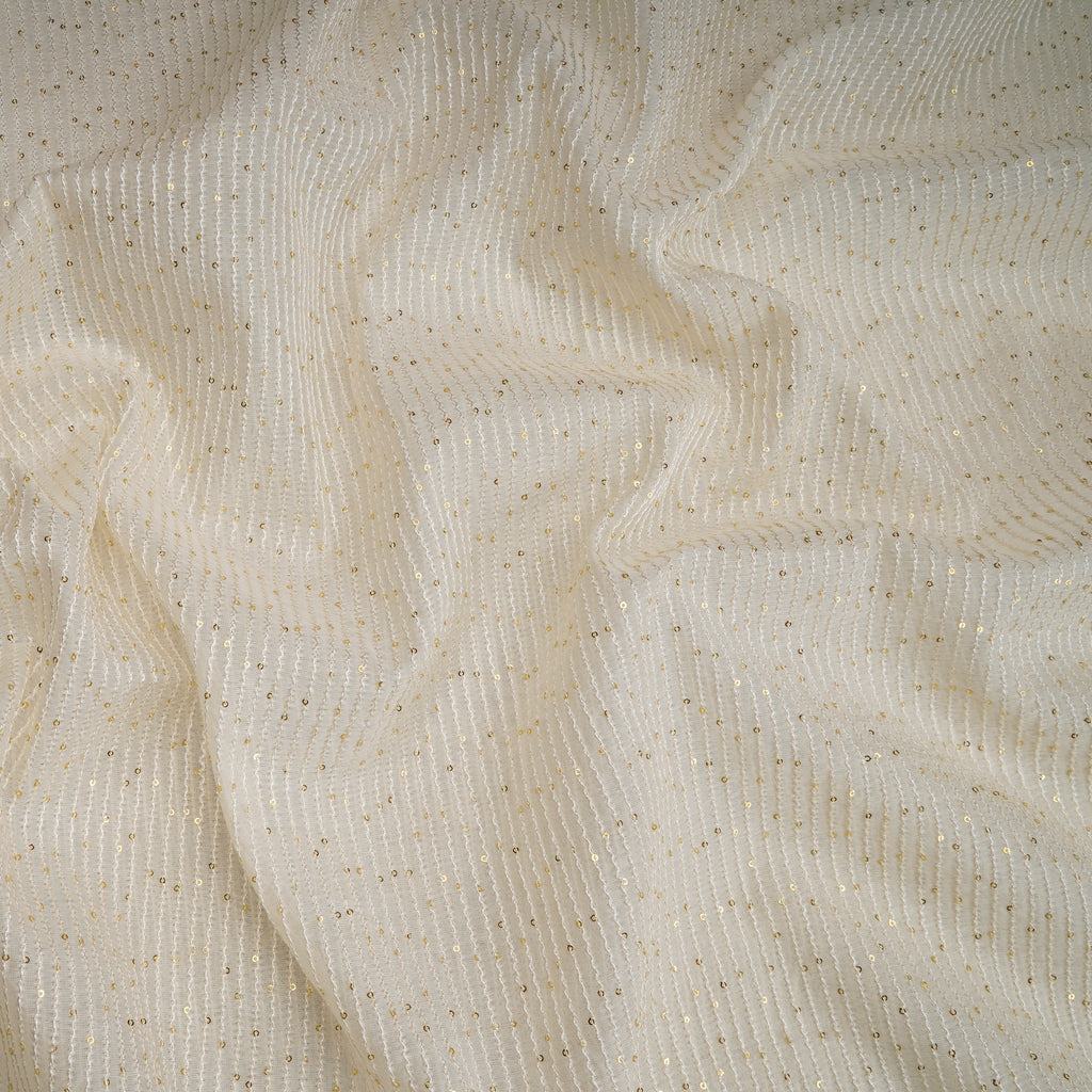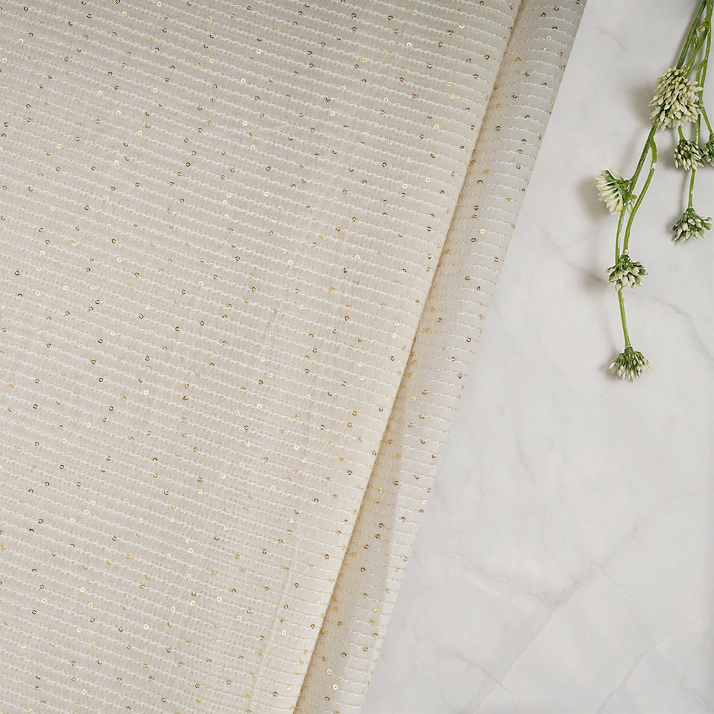 (Pre-Cut 3.80 Mtr)Off White Color Sequins Embroidered Pure Chanderi Fabric
