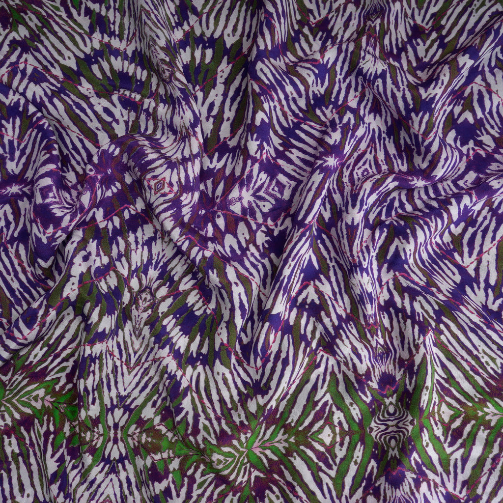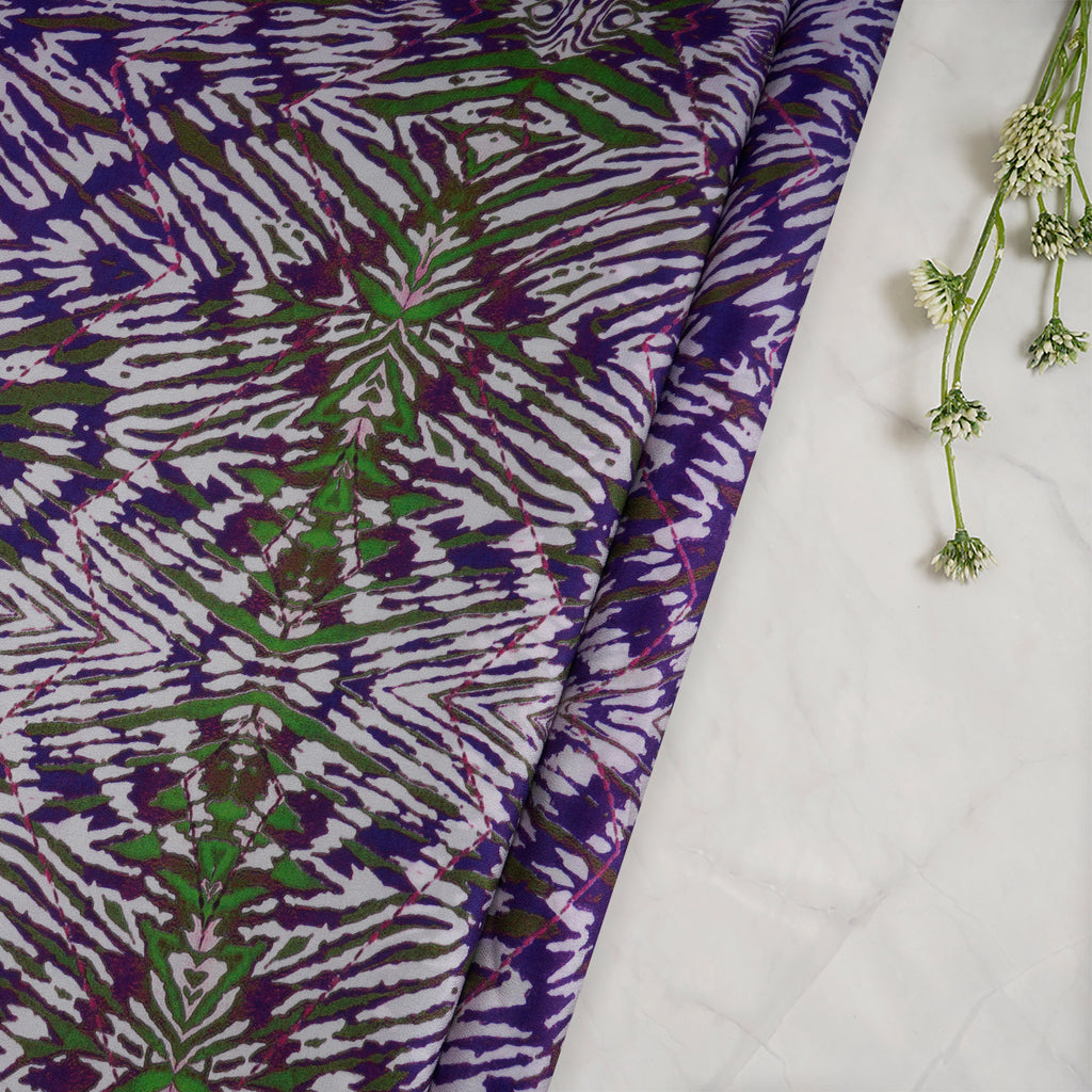 (Pre-Cut 3.80Mtr)Purple-White All Over Pattern Digital Printed Crepe Silk Fabric