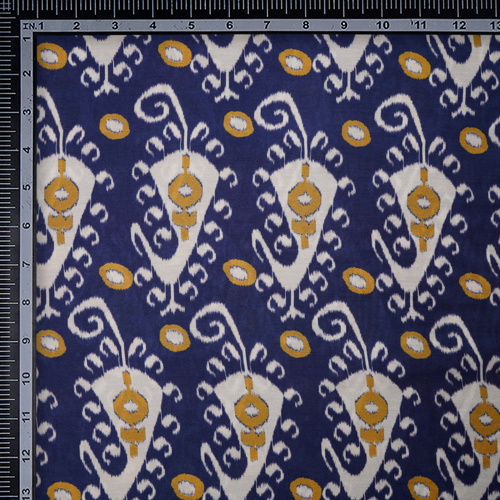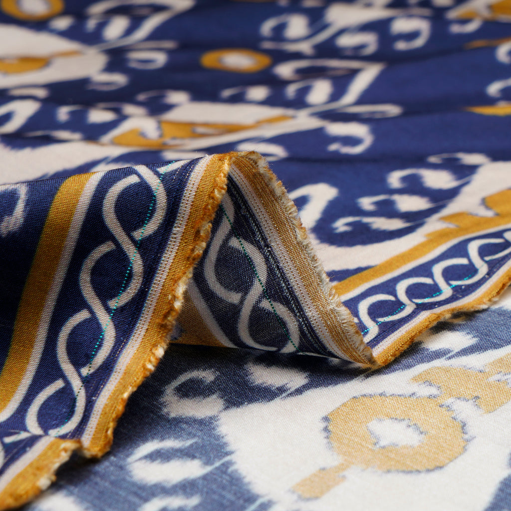 (Pre-Cut 4.00 Mtr)Blue-Yellow Ikat Pattern Digital Print Bemberg Statin Fabric