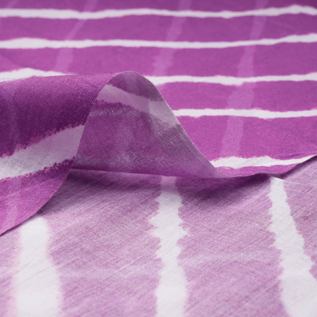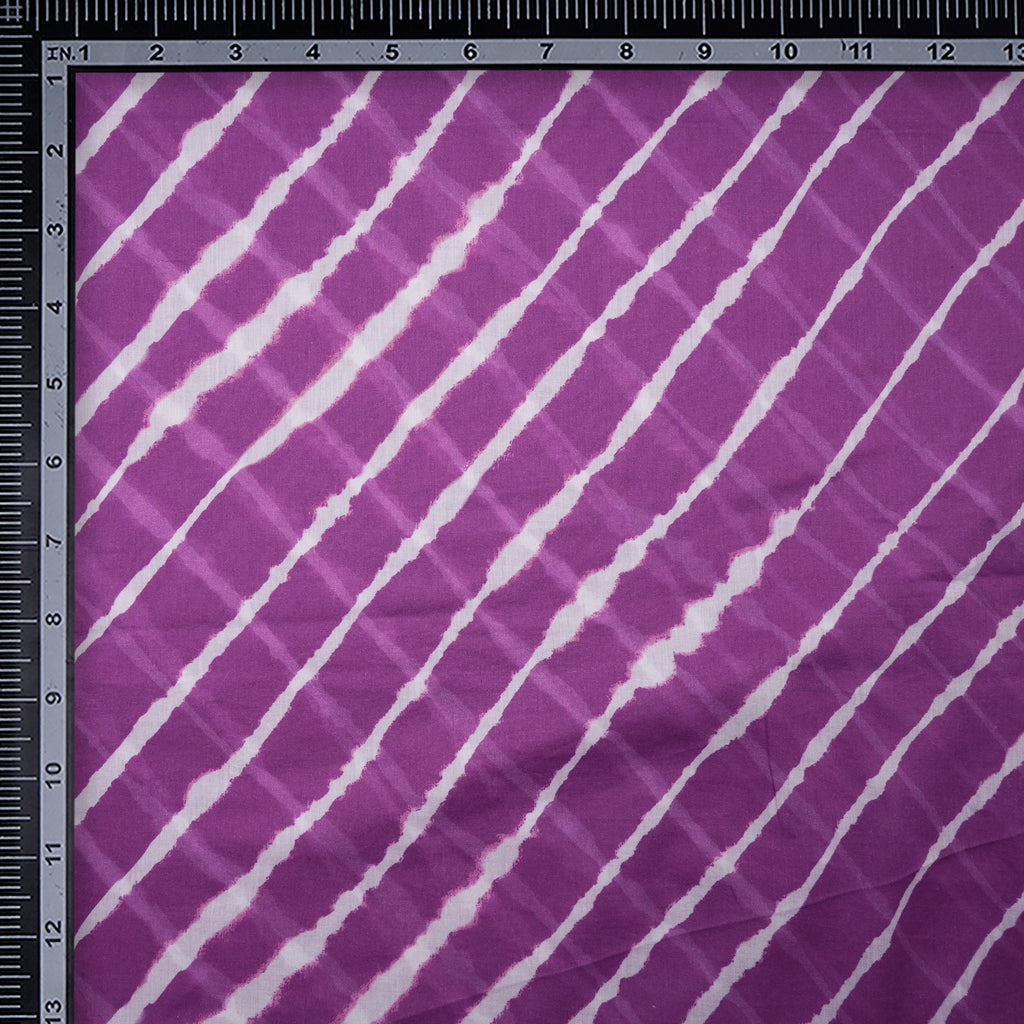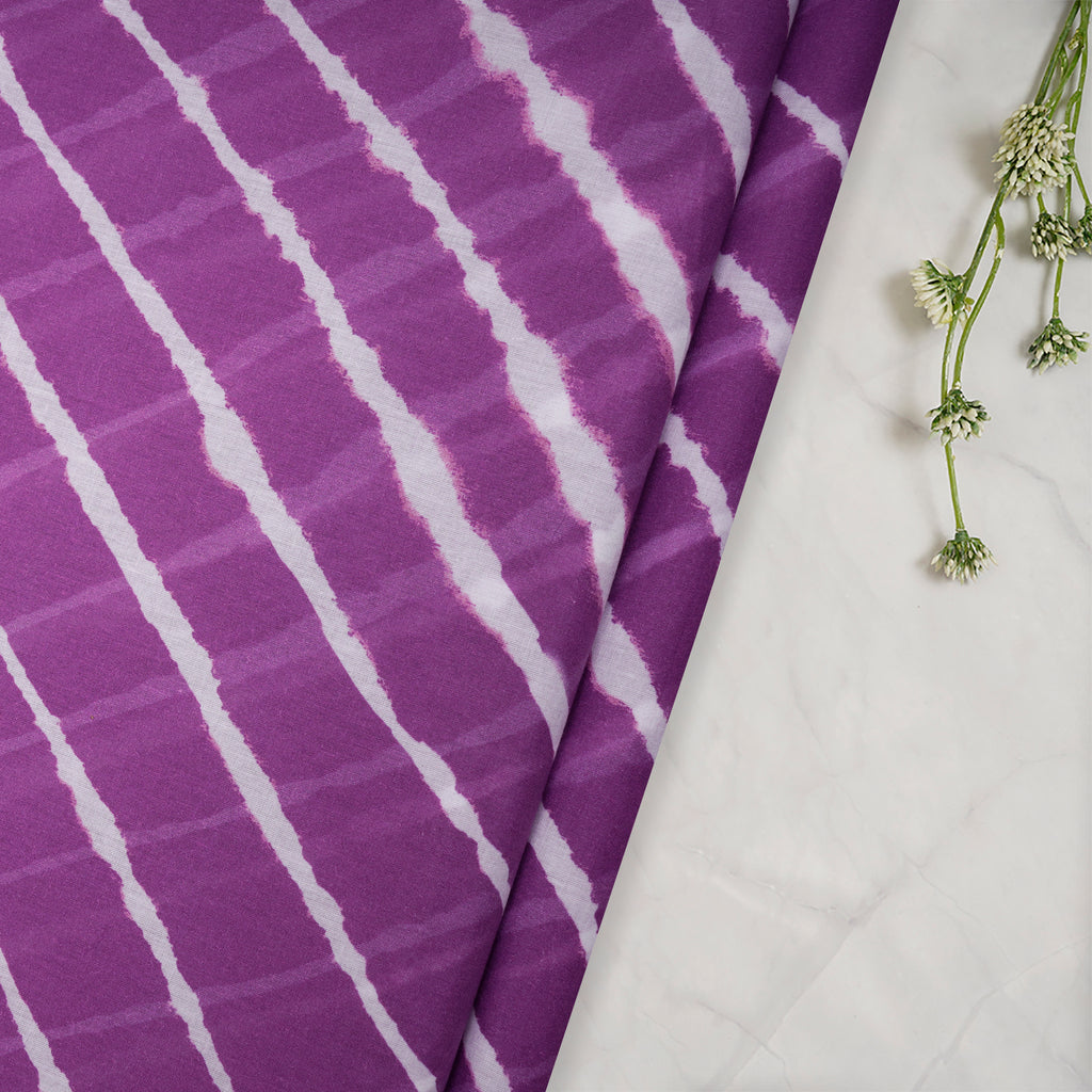 (Pre-Cut 4.00 Mtr)Purple Digital Printed Leheriya Pattern Voile Cotton Muslin Fabric